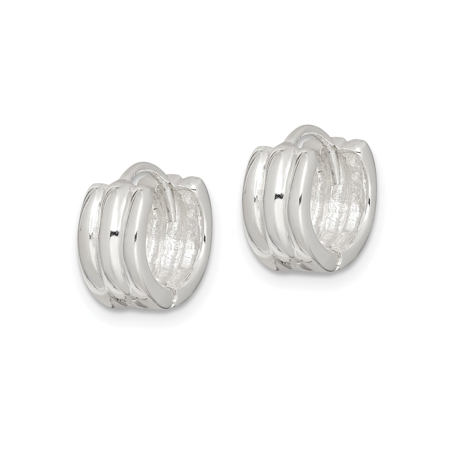 Sterling Silver Huggie Earrings, Triple Row Grooved Hoop Design, Unisex Modern Minimal Style
