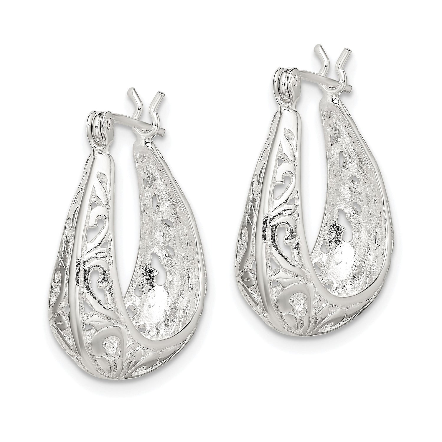 Sterling Silver Teardrop Filigree Hoop Earrings with Ornate Scroll and Vine Design