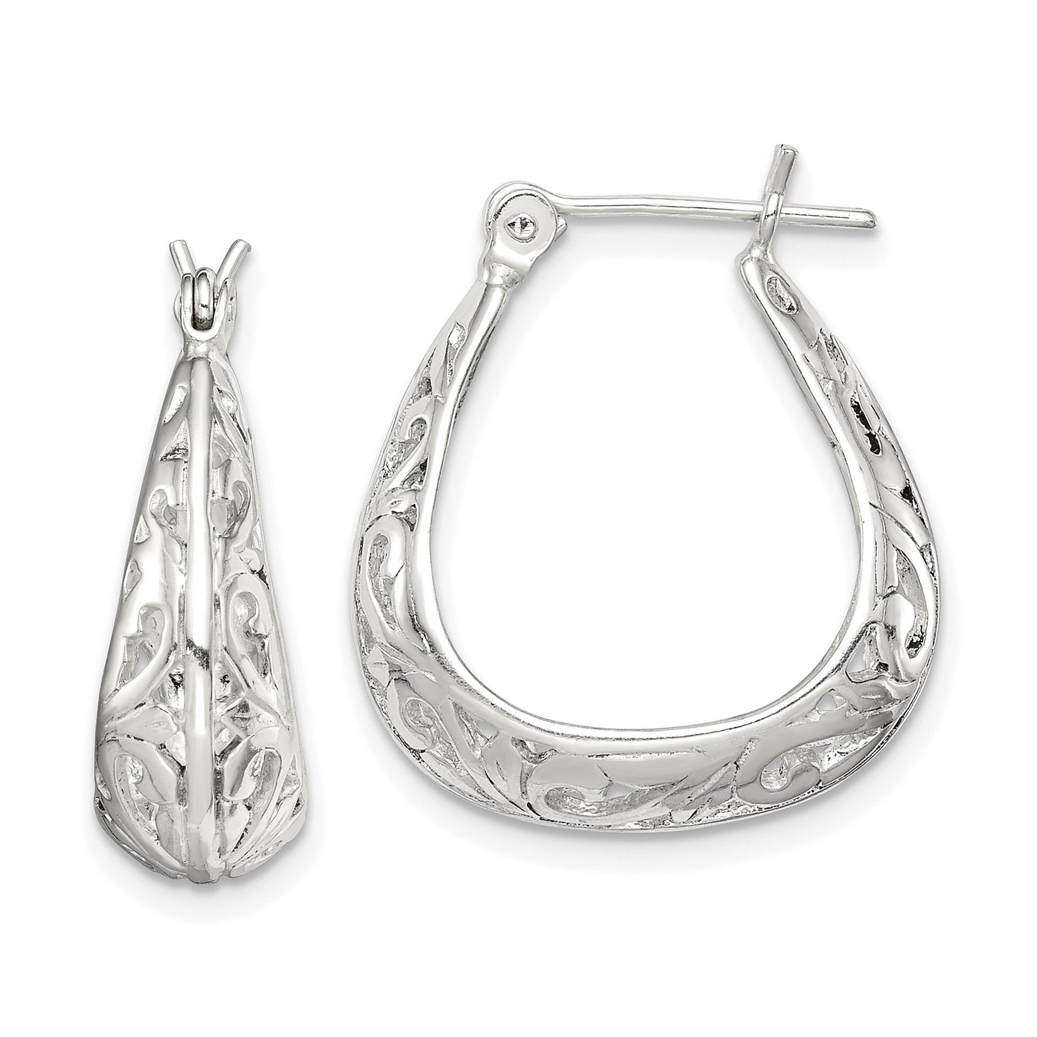 Their lightweight sterling silver construction allows all-day comfort without compromising visual impact. Whether you're dressing for a formal event or elevating your everyday ensemble, these elegant filigree design earrings offer versatile appeal. The filigree hoops feature a polished silver finish that enhances the ornate detailing while highlighting the natural shine of textured silver. Ideal for those who appreciate decorative silver earrings, these hoops boast intricate scroll pattern earrings craftsmanship that speaks to vintage elegance.
