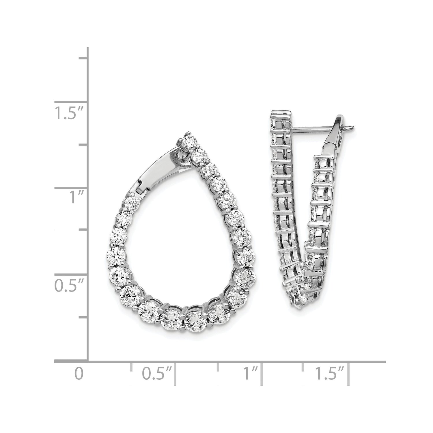 Sterling Silver Teardrop Hoop Earrings with Cubic Zirconia, Rhodium Plated Dressy Style