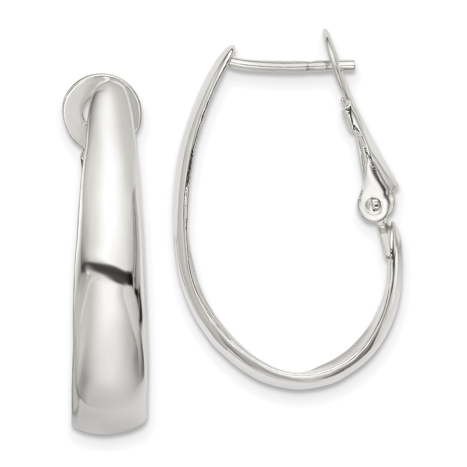 Sterling Silver Teardrop Hoop Earrings with Hinged Snap Closure and High Polish Finish
