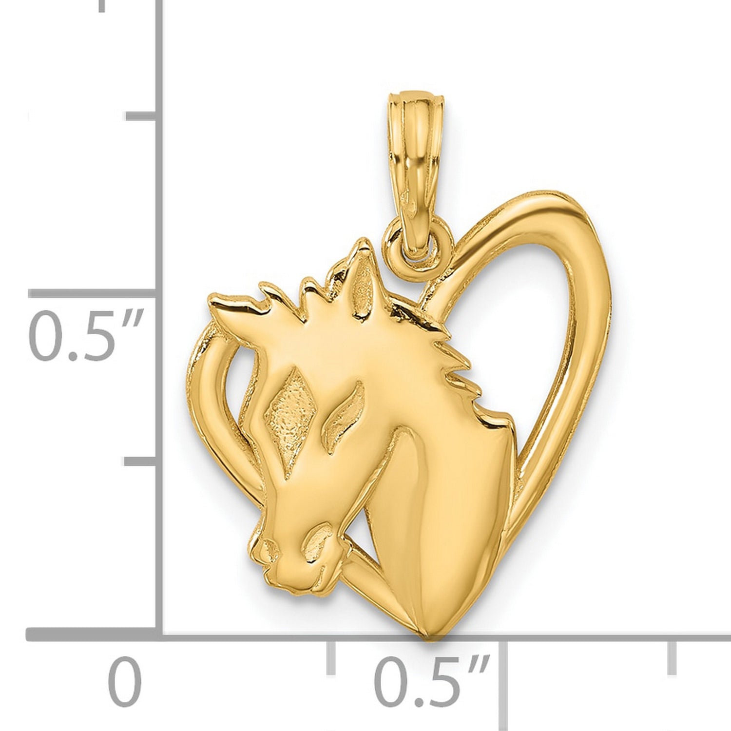 14k Yellow Gold Horse Head Pendant with Open Heart Design for Women