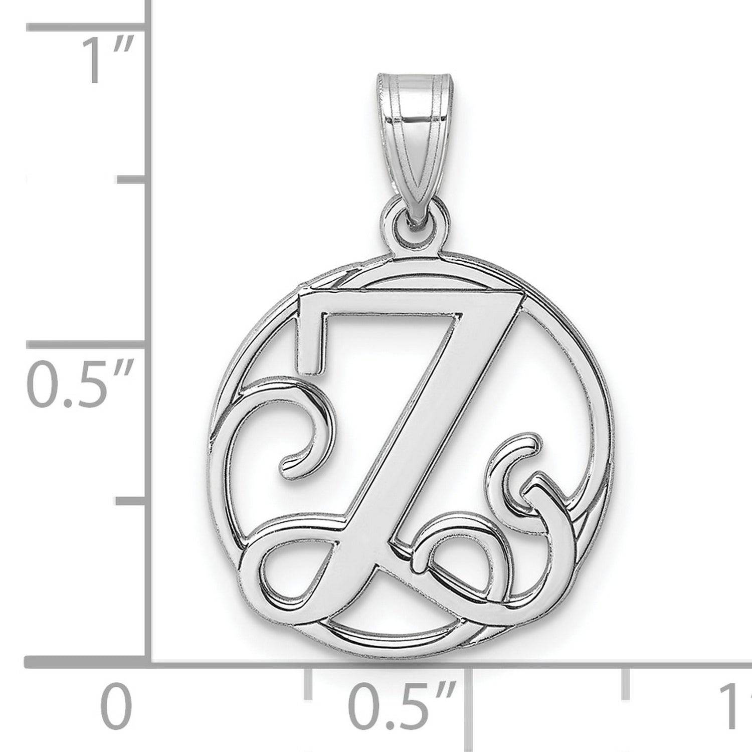 Sterling Silver Initial Z Pendant Charm with Script Letter in Openwork Round Design