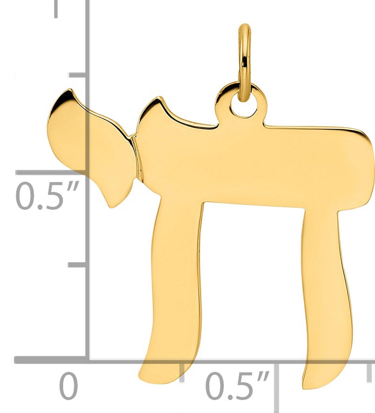Polished Solid Chai Symbol Charm Pendant in Real 14k Yellow Gold