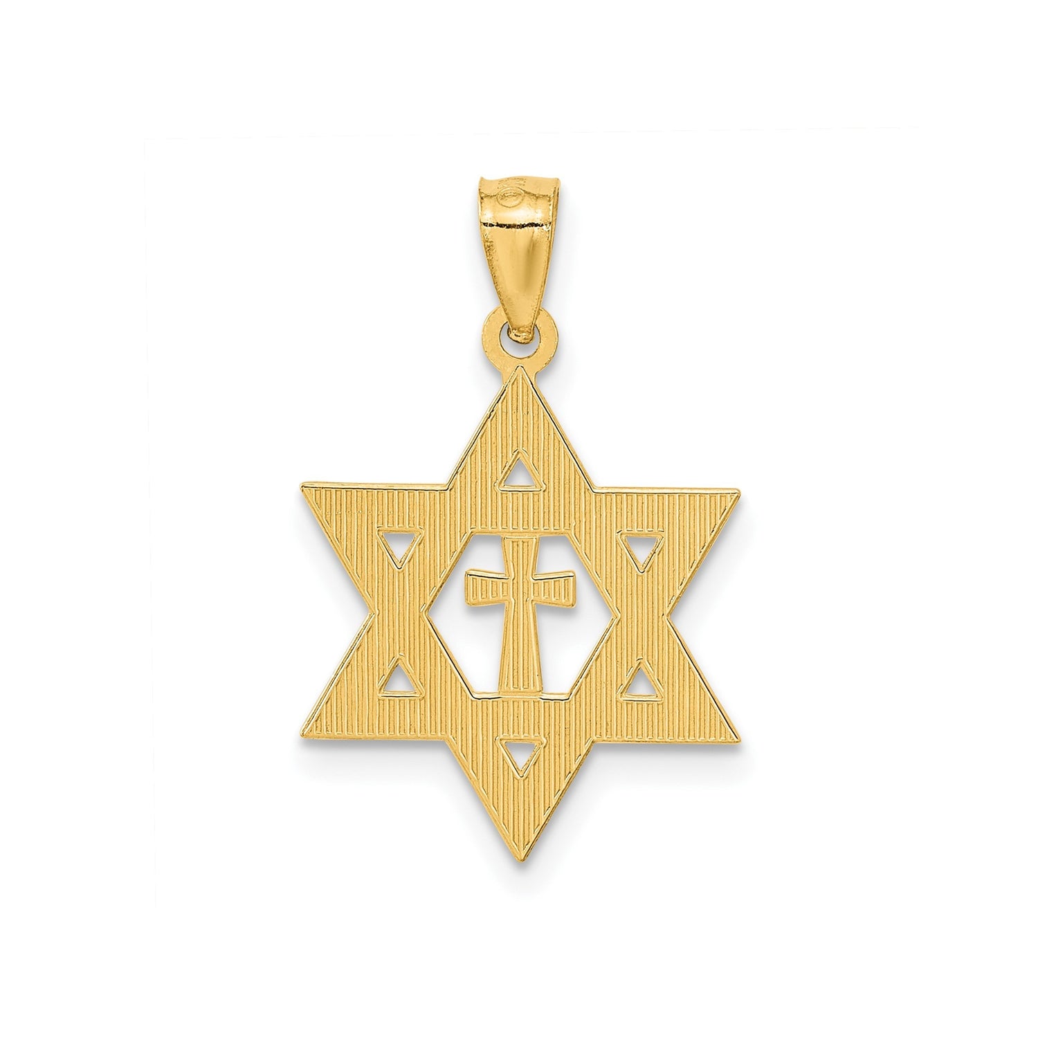 14k Yellow Gold Cross Pendant with Star of David Symbol, Unisex Religious Jewelry