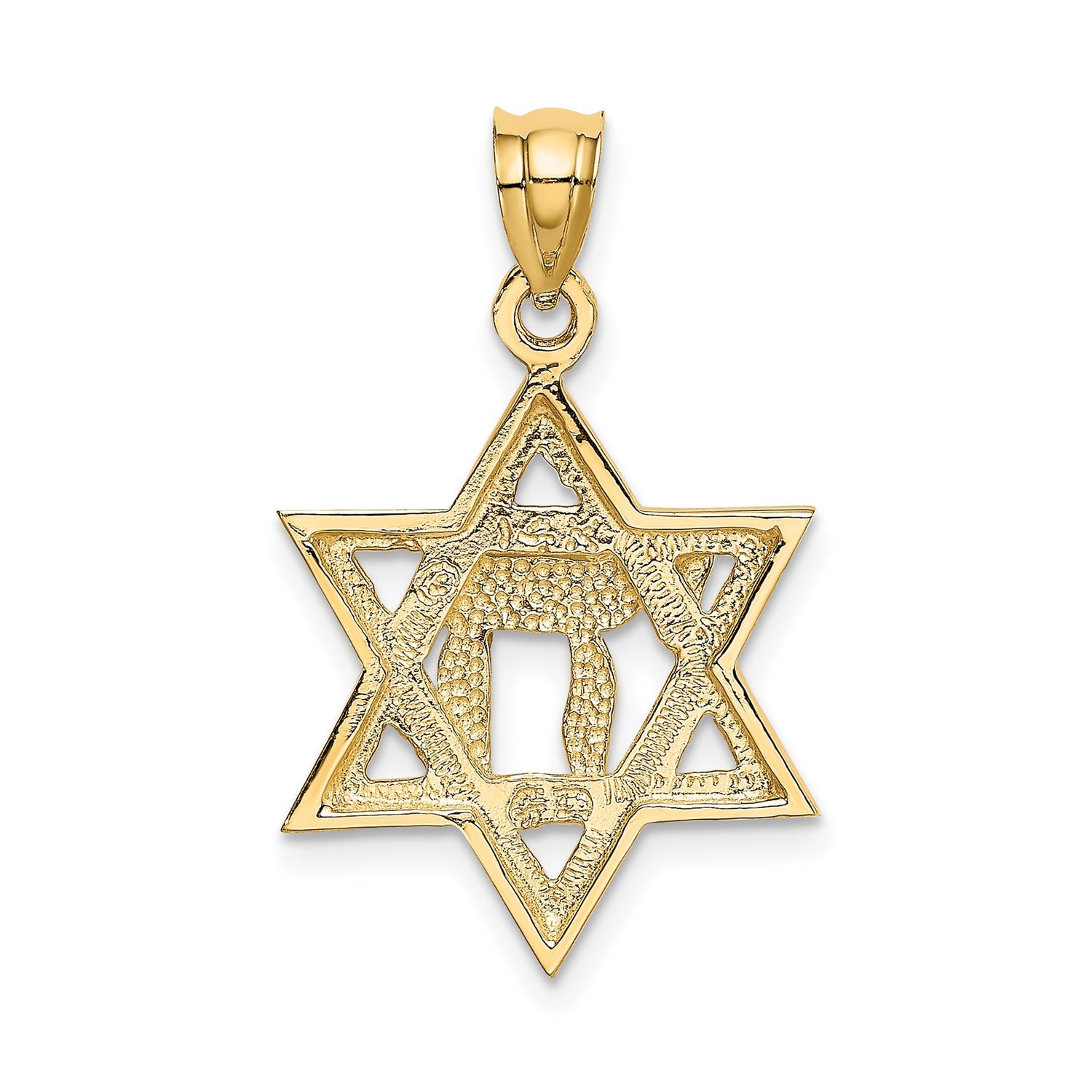 Embrace the beauty of this Polished Chai Long Life Symbol Star Of David Charm Pendant, a piece that not only enhances your style but also reflects your personal journey and values.