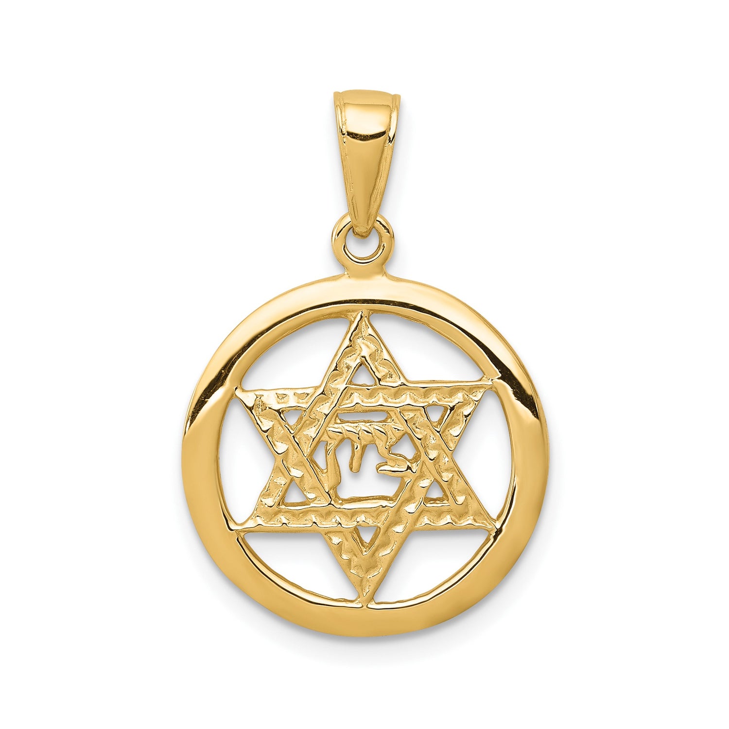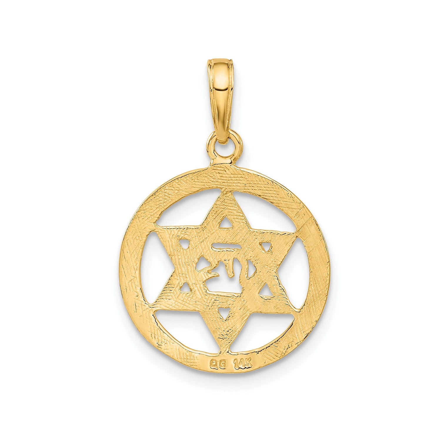 14k Yellow Gold Pendant with Star of David and Chai Symbol, Jewish Religious Charm
