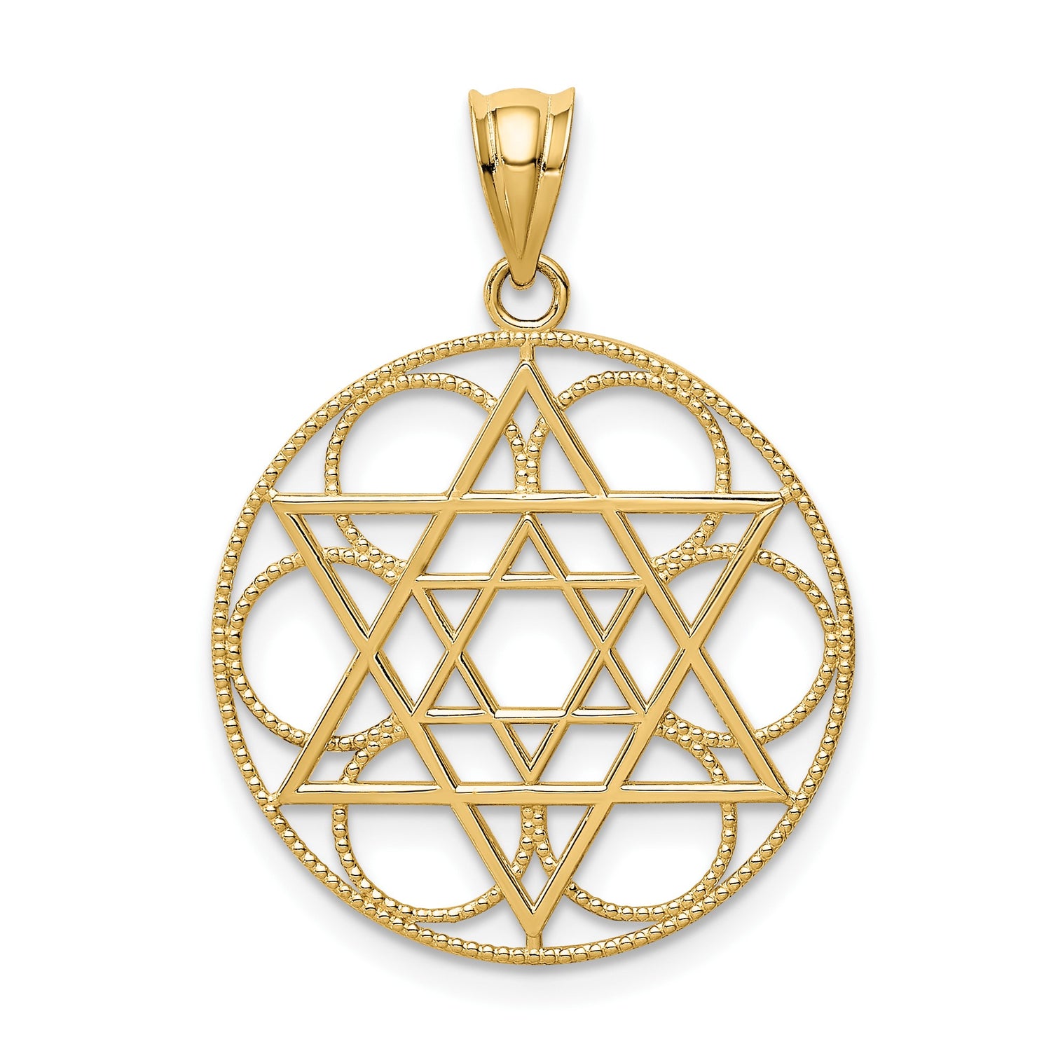 14k Yellow Gold Star of David Pendant, Circular Jewish Medallion for Women or Unisex Wear
