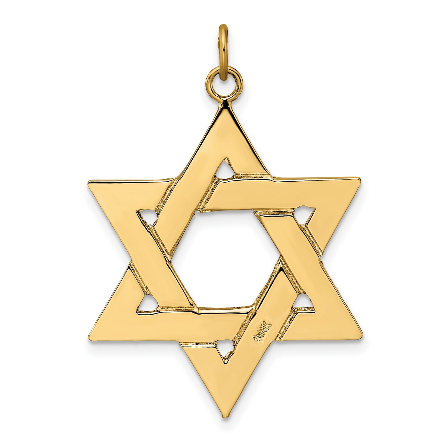 Polished Solid Star of David Charm Pendant in Real 14k Yellow Gold