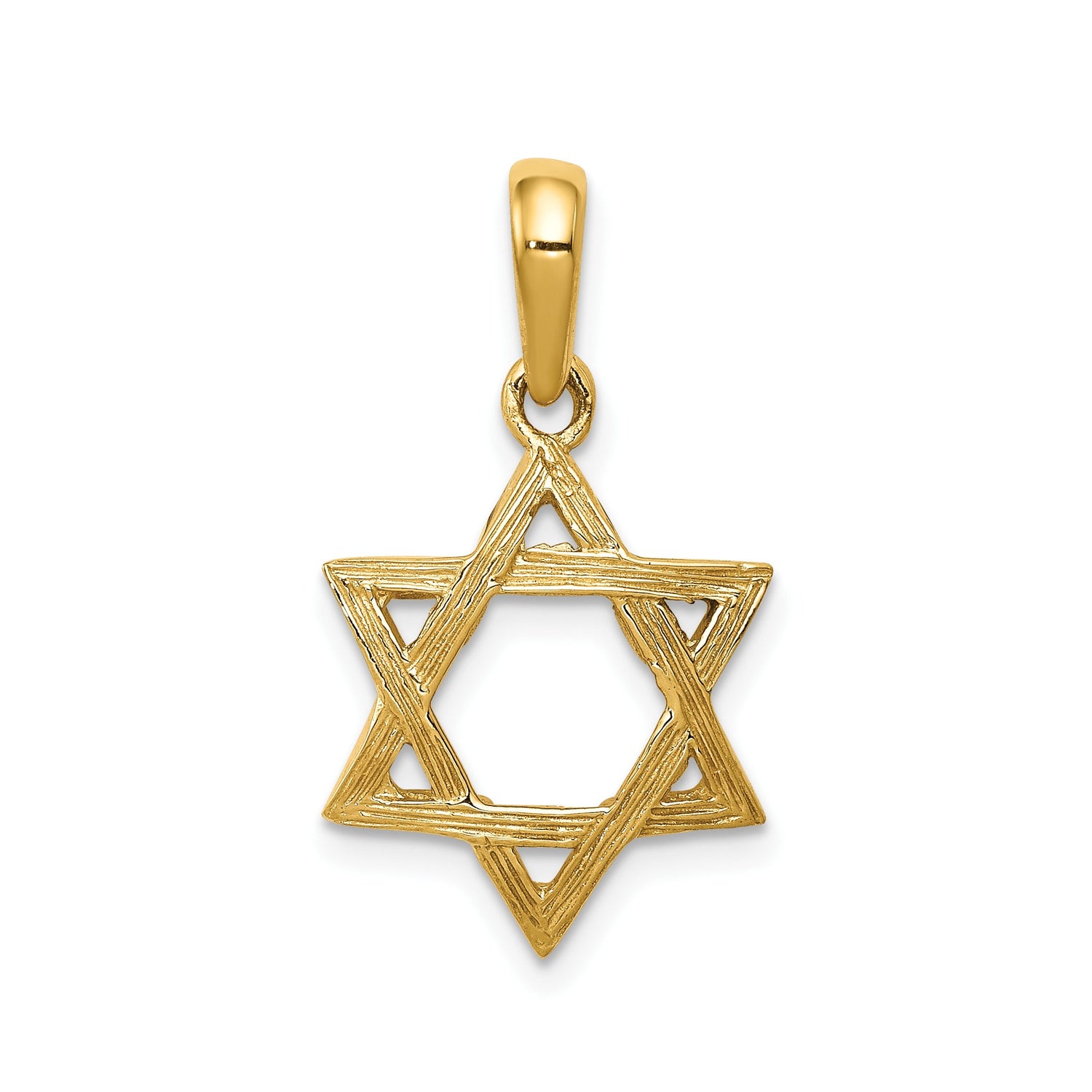 14k Yellow Gold Star of David Pendant, Textured Religious Symbol for Women or Unisex Wear