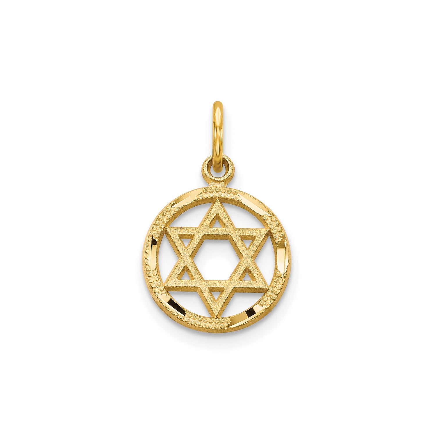14k Yellow Gold Star of David Pendant with Textured Circle Frame and Cutout Design