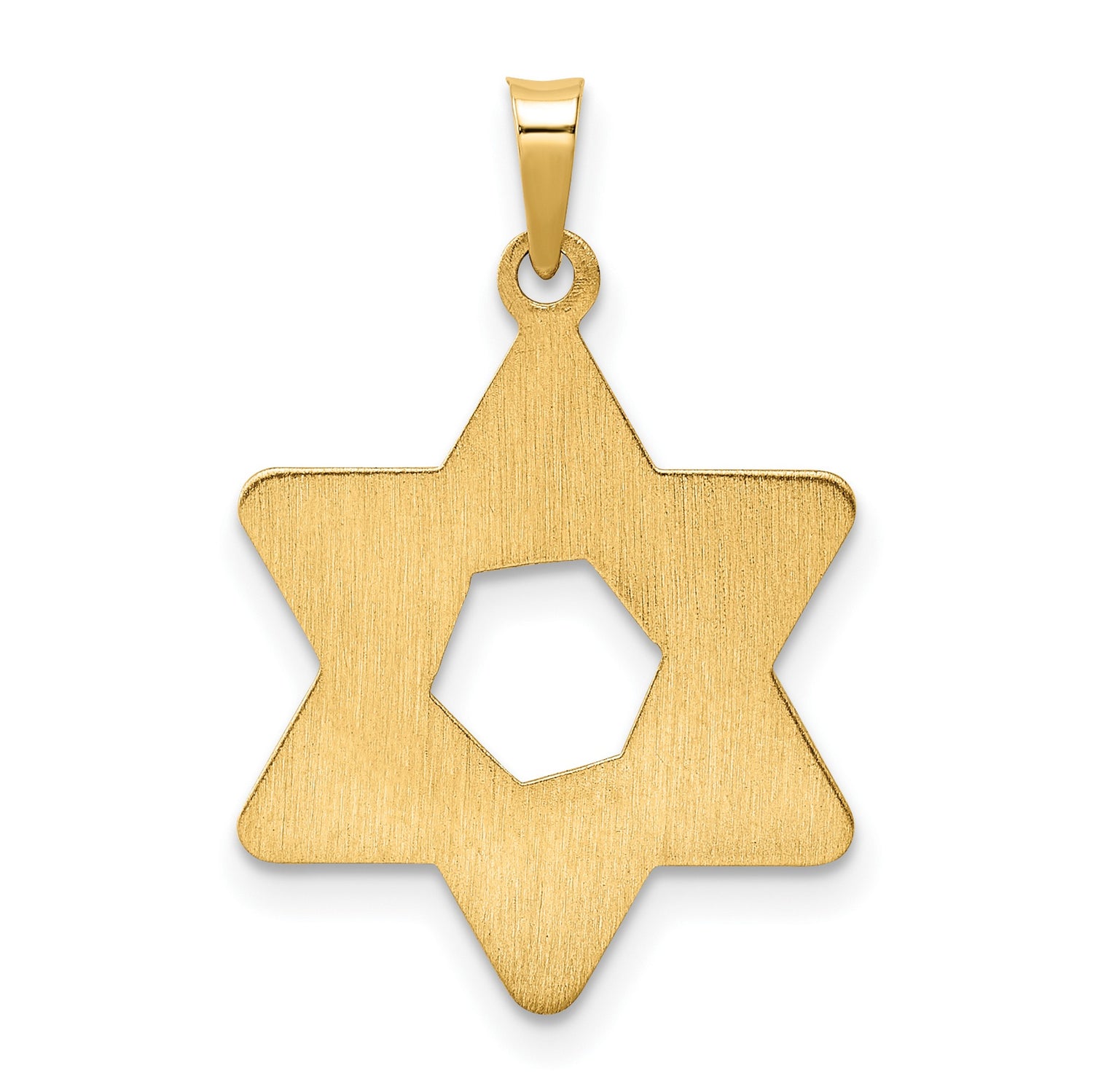 Polished and Textured Solid Star of David Charm Pendant in Real 14k Yellow Gold