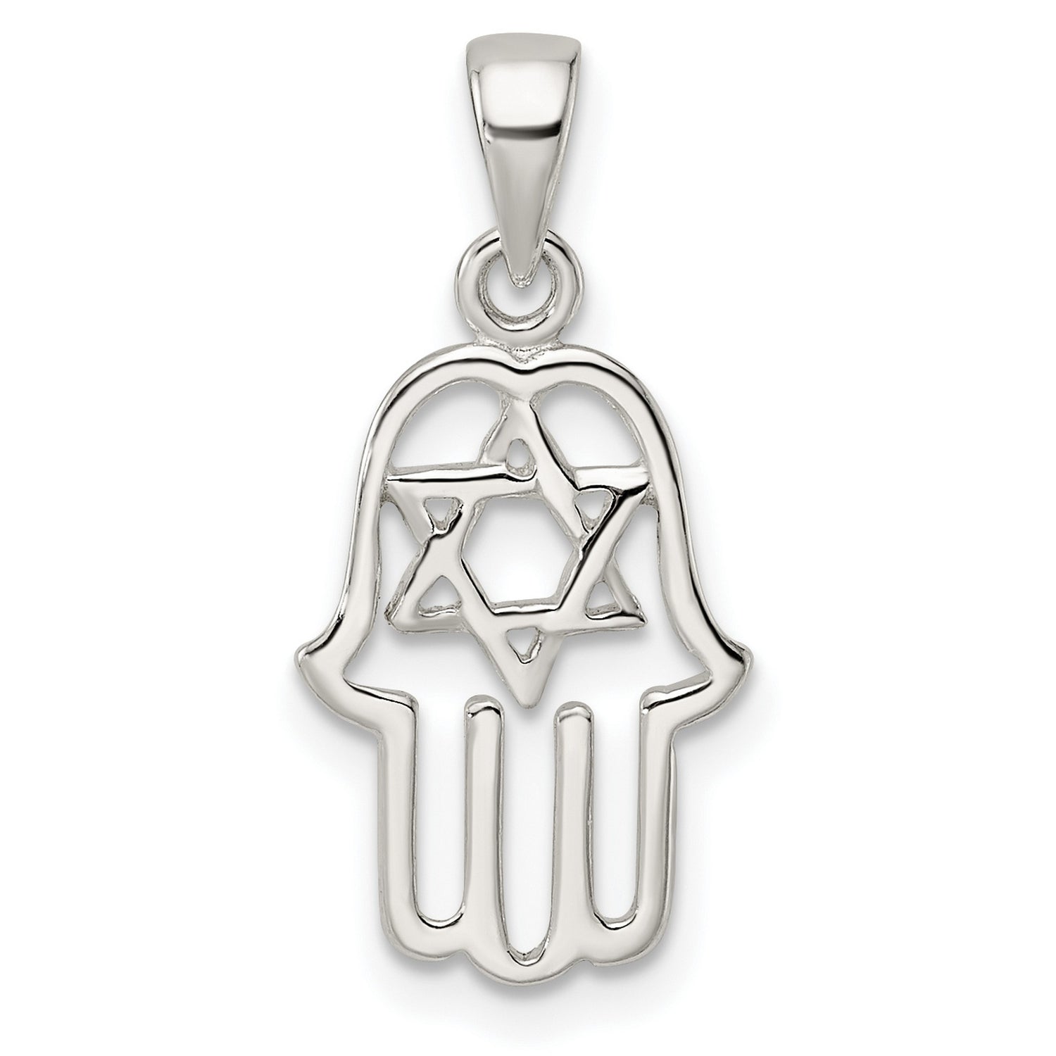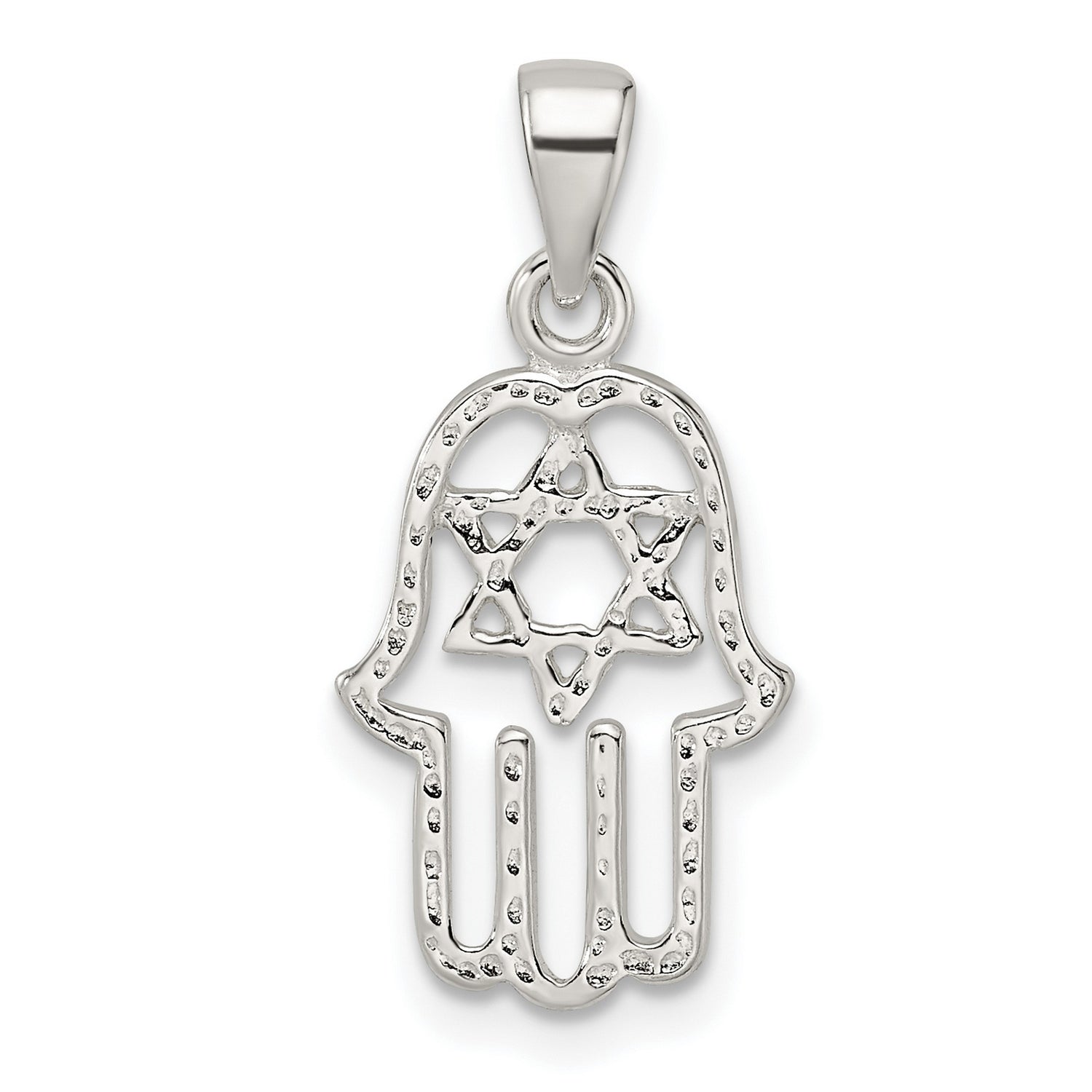Sterling Silver Hamsa Hand Pendant with Openwork Star of David Design