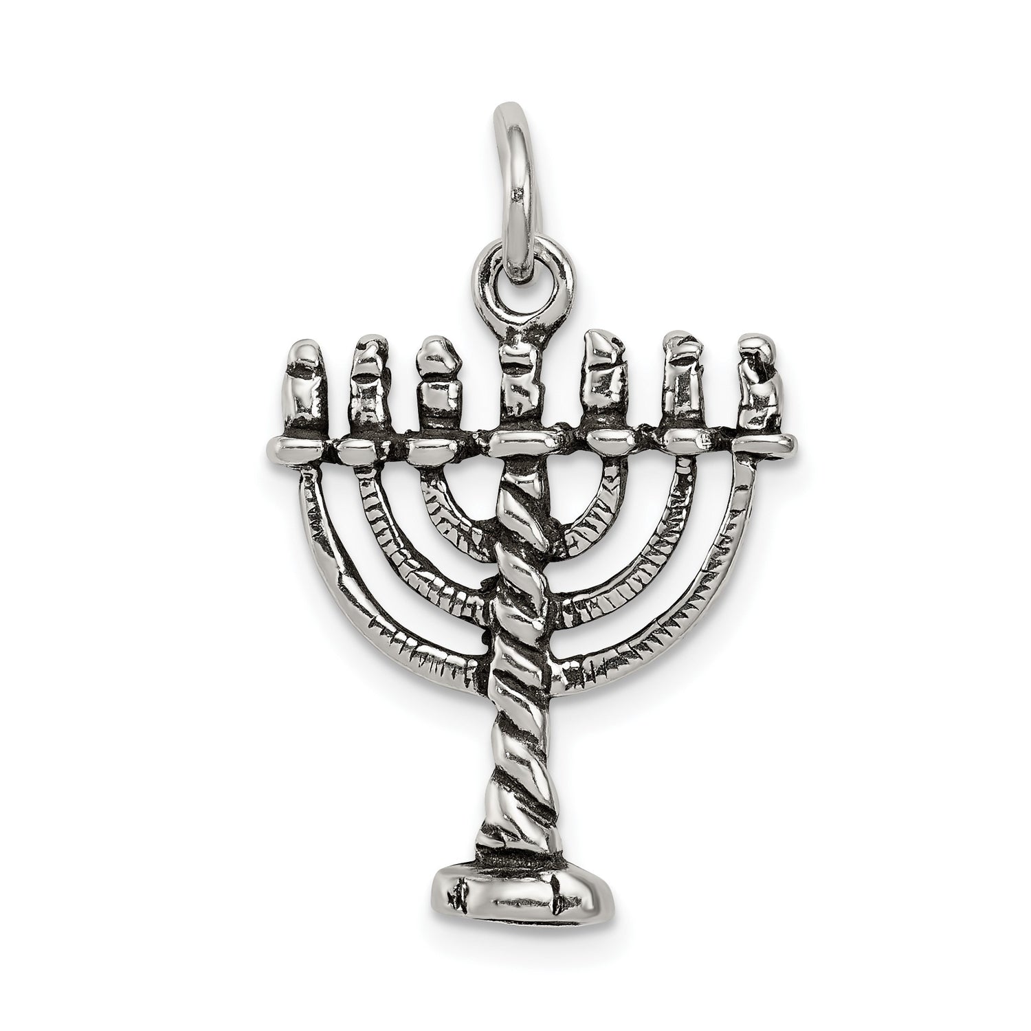 Sterling Silver Menorah Pendant Featuring Seven Branch Candelabrum Design, Judaica Jewelry