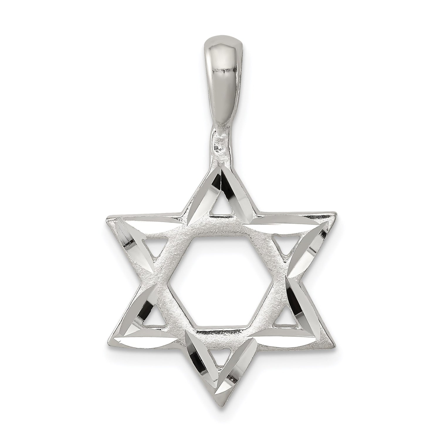 Sterling Silver Star of David Pendant, Polished Geometric Jewish Symbol Charm, Unisex Religious Jewelry
