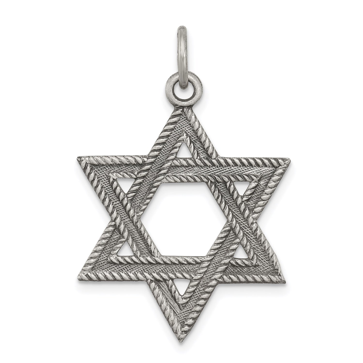 Antiqued Star of David Charm Pendant in Real 925 Sterling Silver