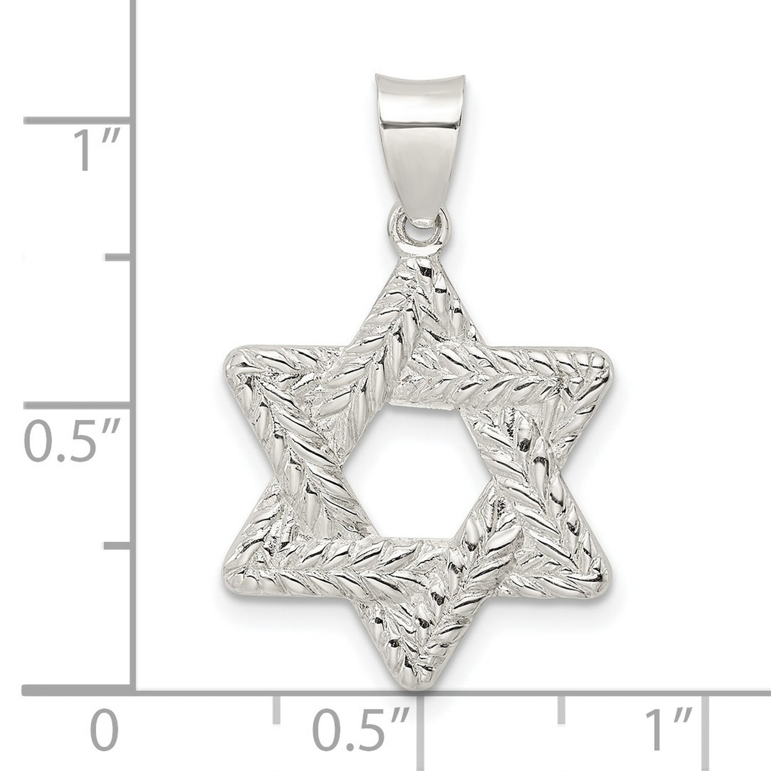 Sterling Silver Star of David Pendant with Textured Detailing, Unisex Judaica Charm