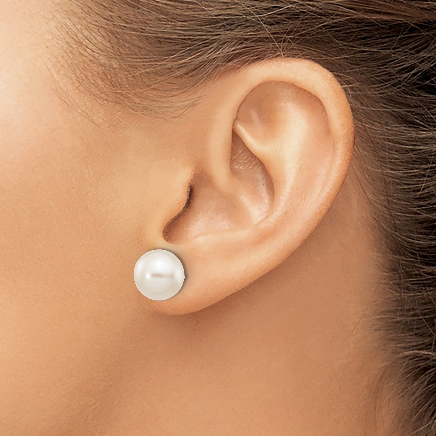 10k White Gold Pearl Stud Earrings, Classic Round Cultured White Pearls for Women