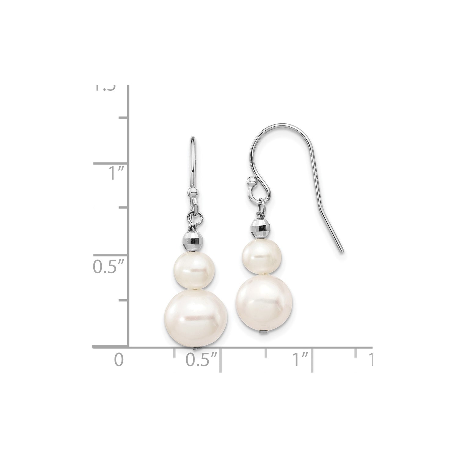 14k White Gold Dangle Earrings with Round Cultured Freshwater Pearls and Faceted Beads