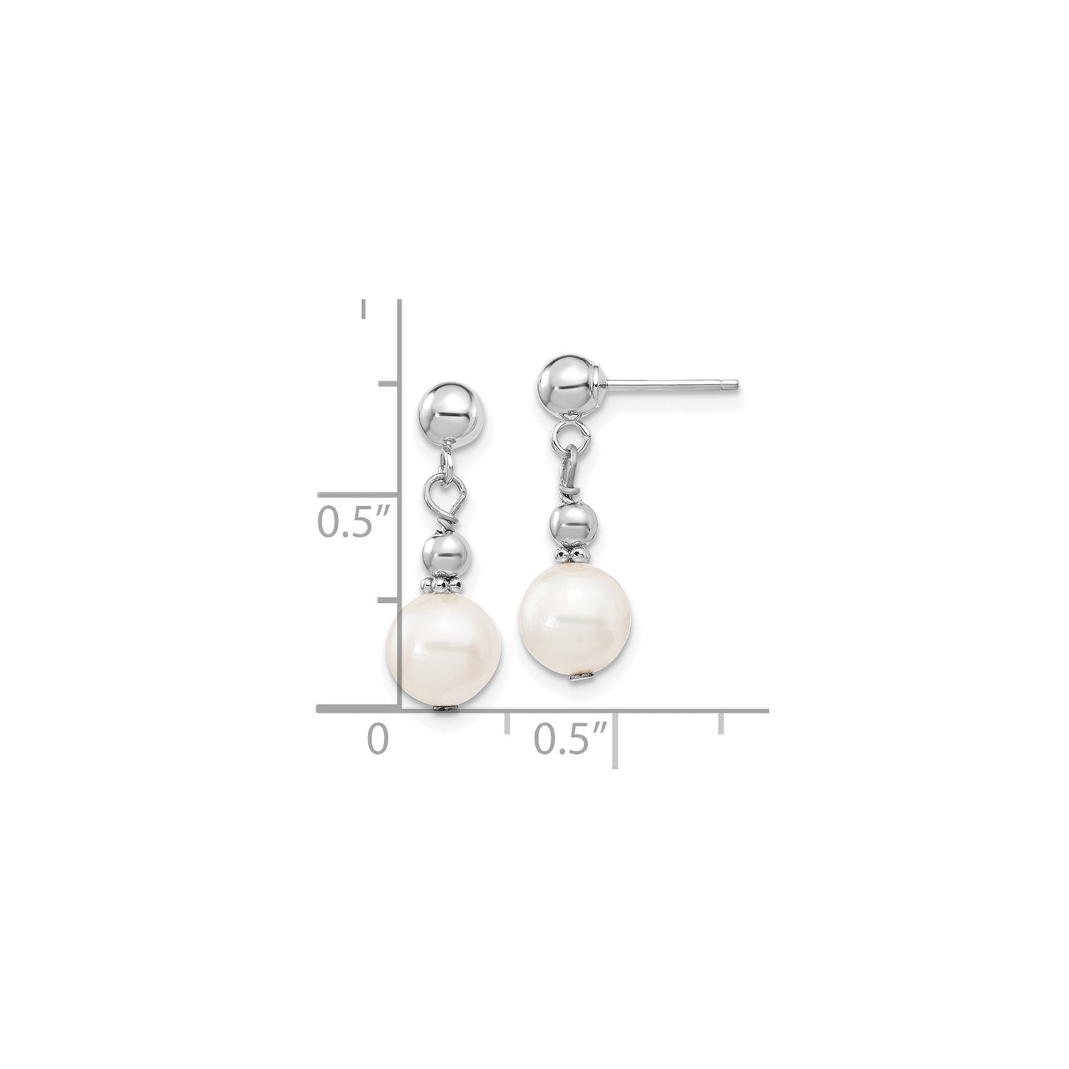 14k White Gold Dangle Earrings with White Cultured Pearls and Polished Beads for Women