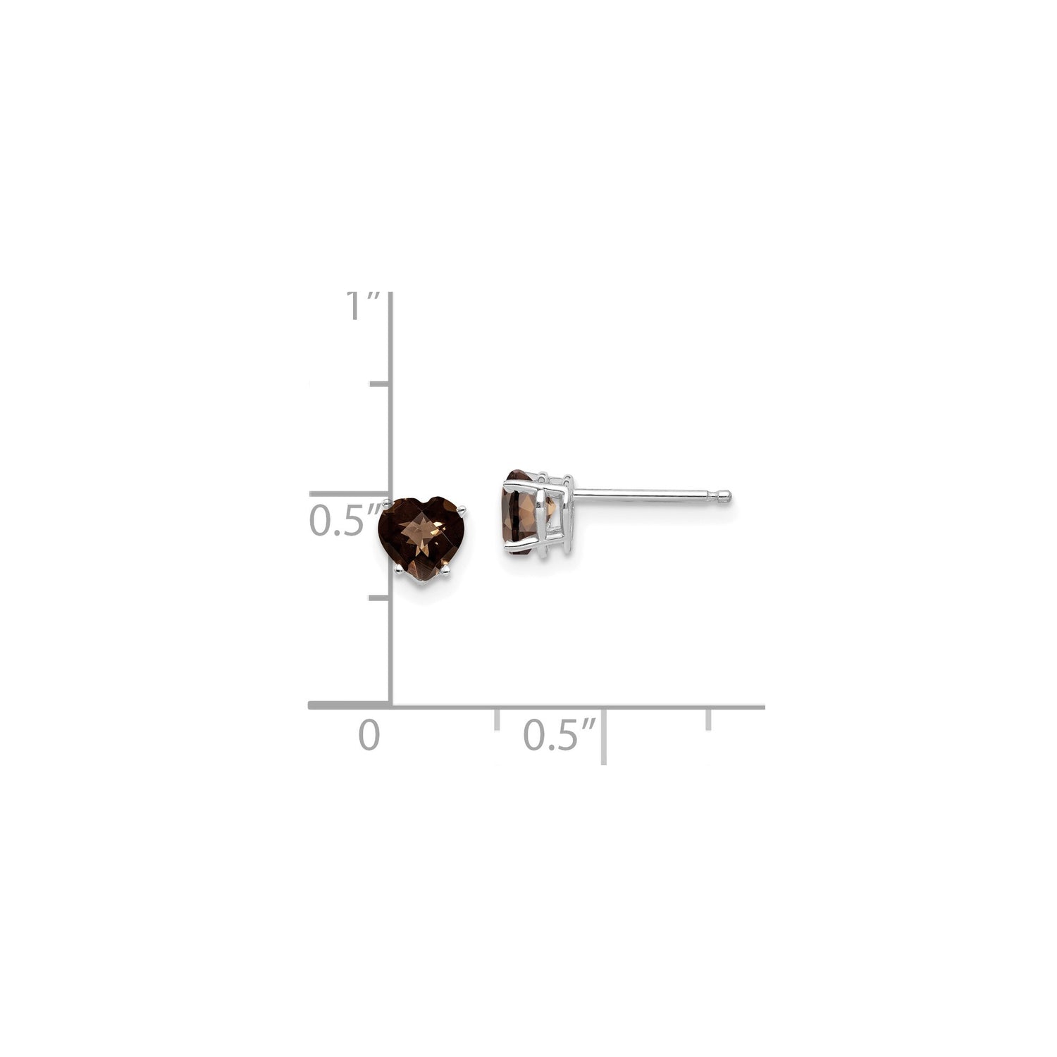 14k White Gold Heart Stud Earrings with Smoky Quartz Gemstone for Women