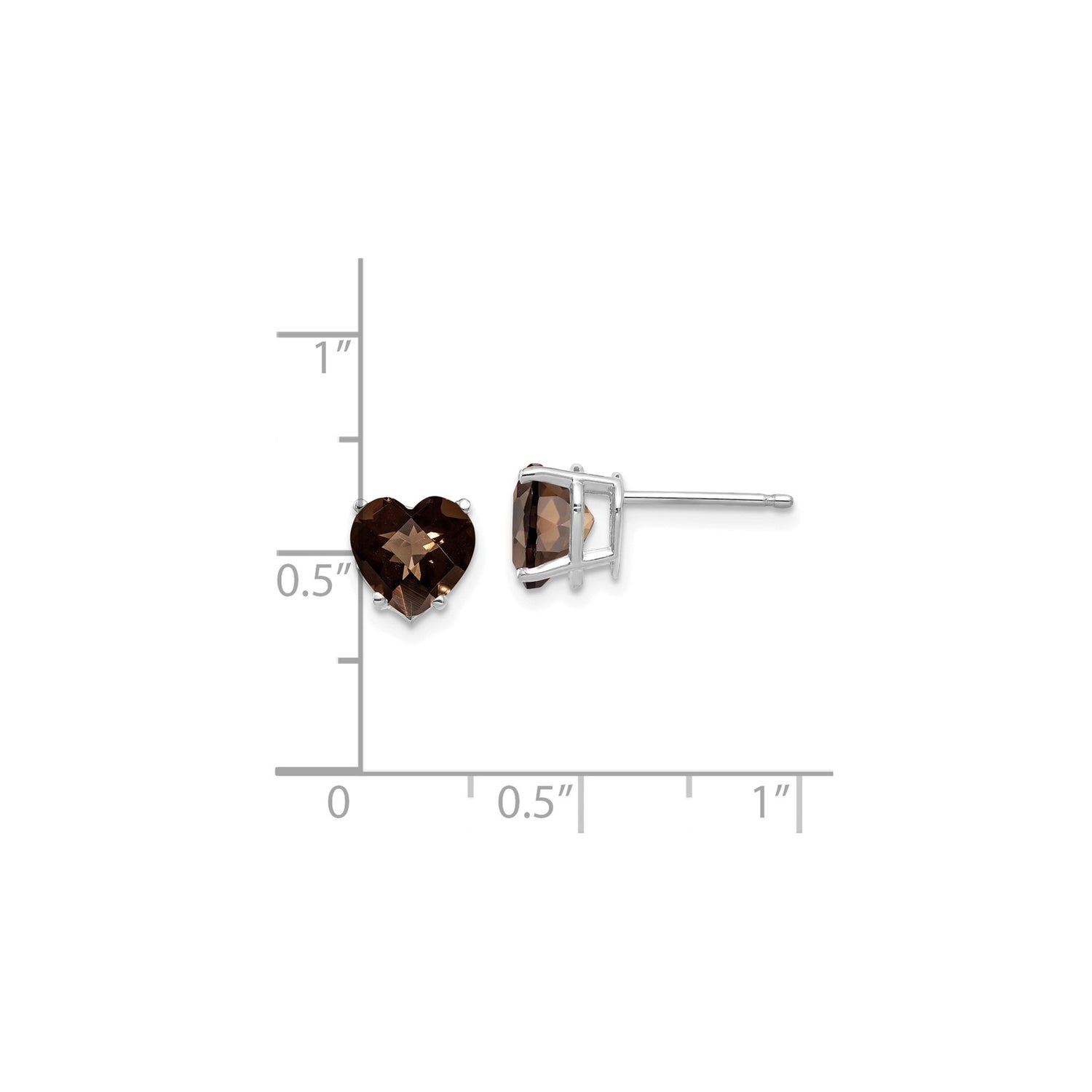 14k White Gold Heart Stud Earrings with Smoky Quartz Gemstone, Romantic Jewelry for Women
