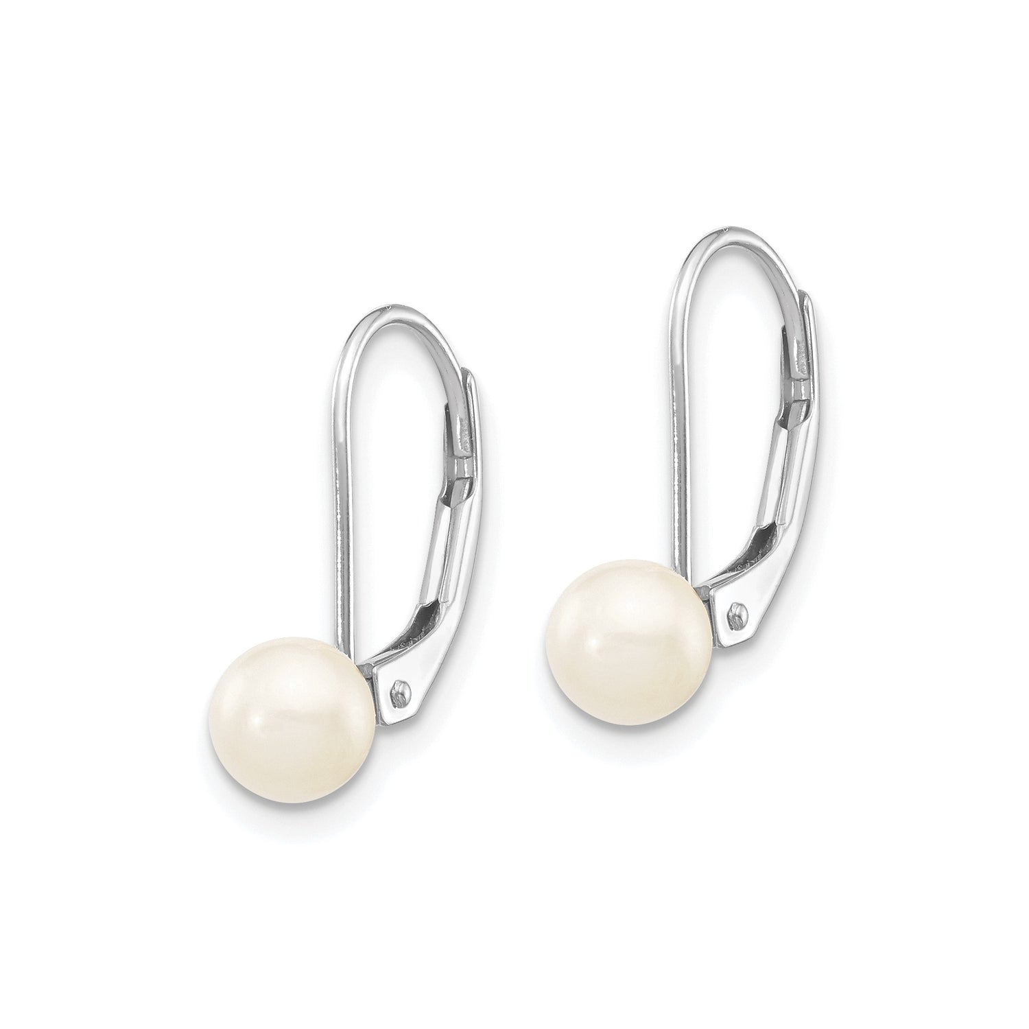 14k White Gold Leverback Earrings with Cultured Pearls, Classic Drop Style for Women