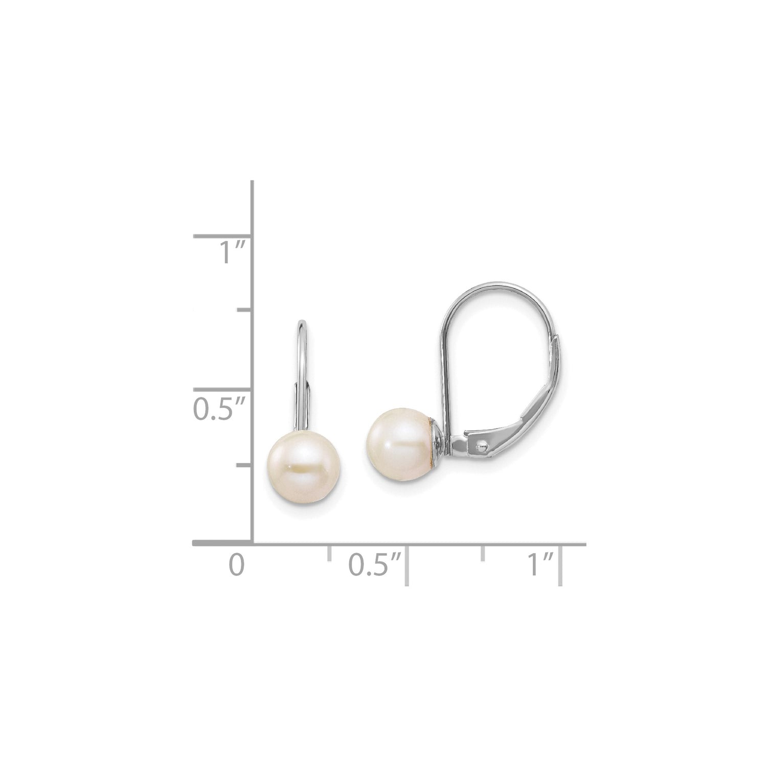 14k White Gold Leverback Earrings with Round White Cultured Pearls, Classic Drop Design
