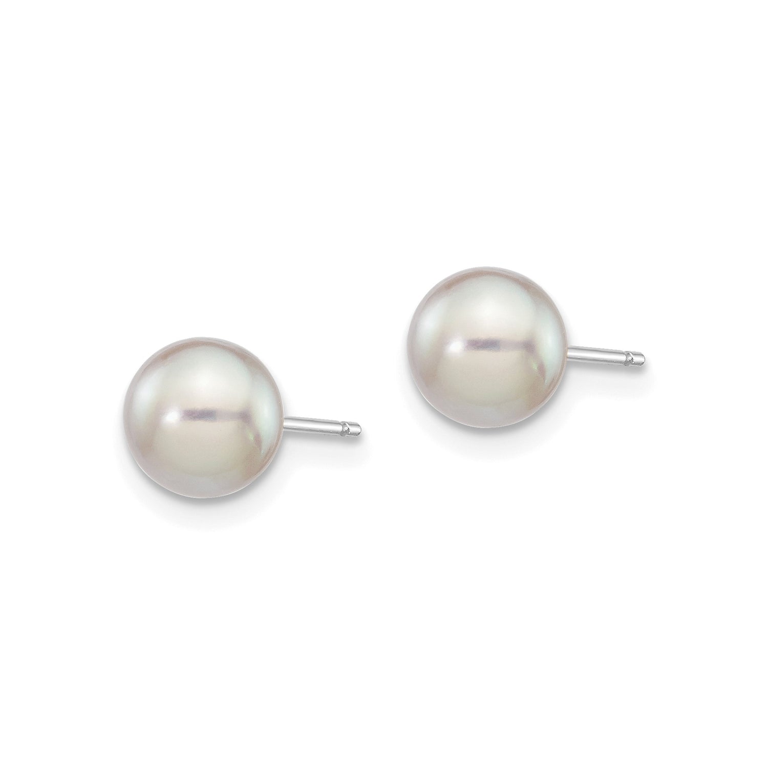 14k White Gold Pearl Stud Earrings, Round White Cultured Pearls, Classic Formal Style