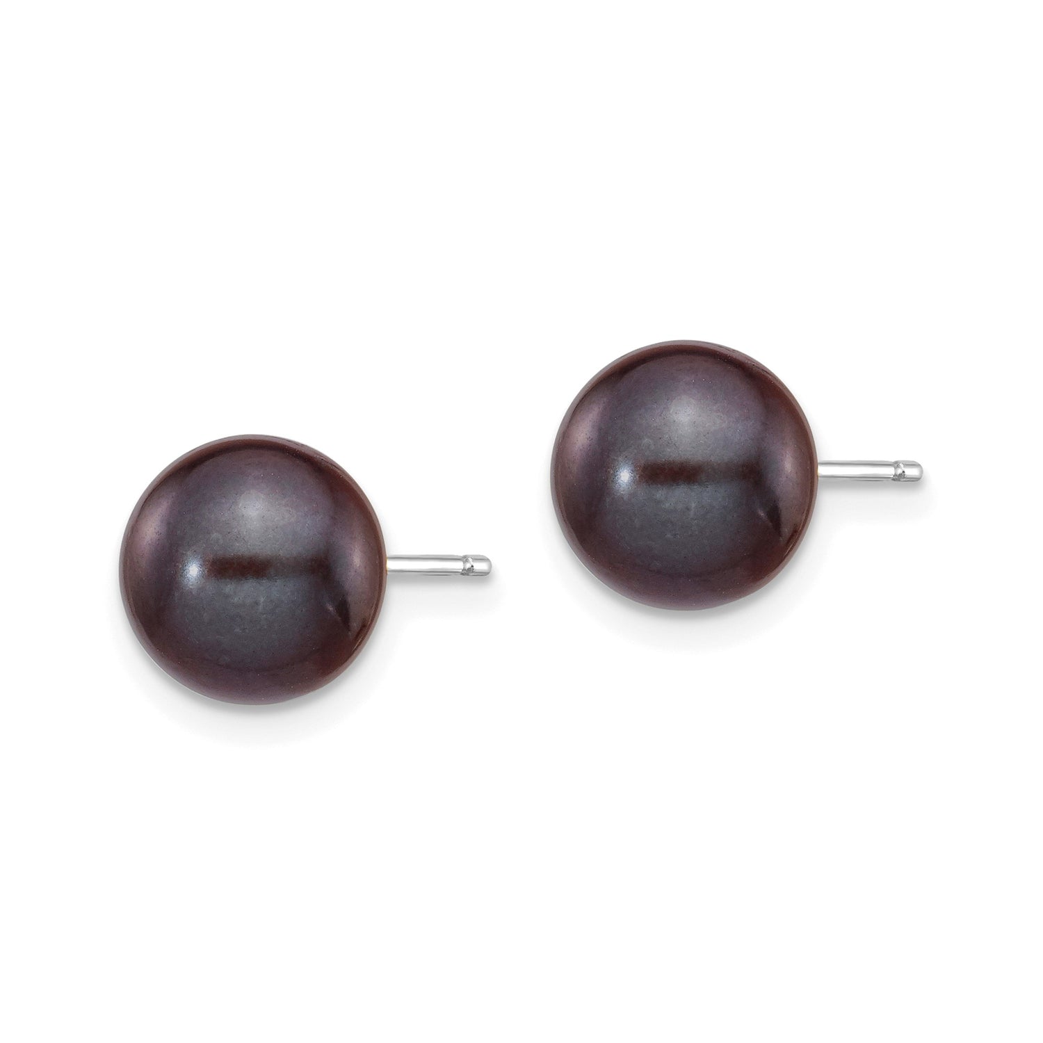 14k White Gold Pearl Stud Earrings with Round Black Cultured Pearls, Minimalist Design
