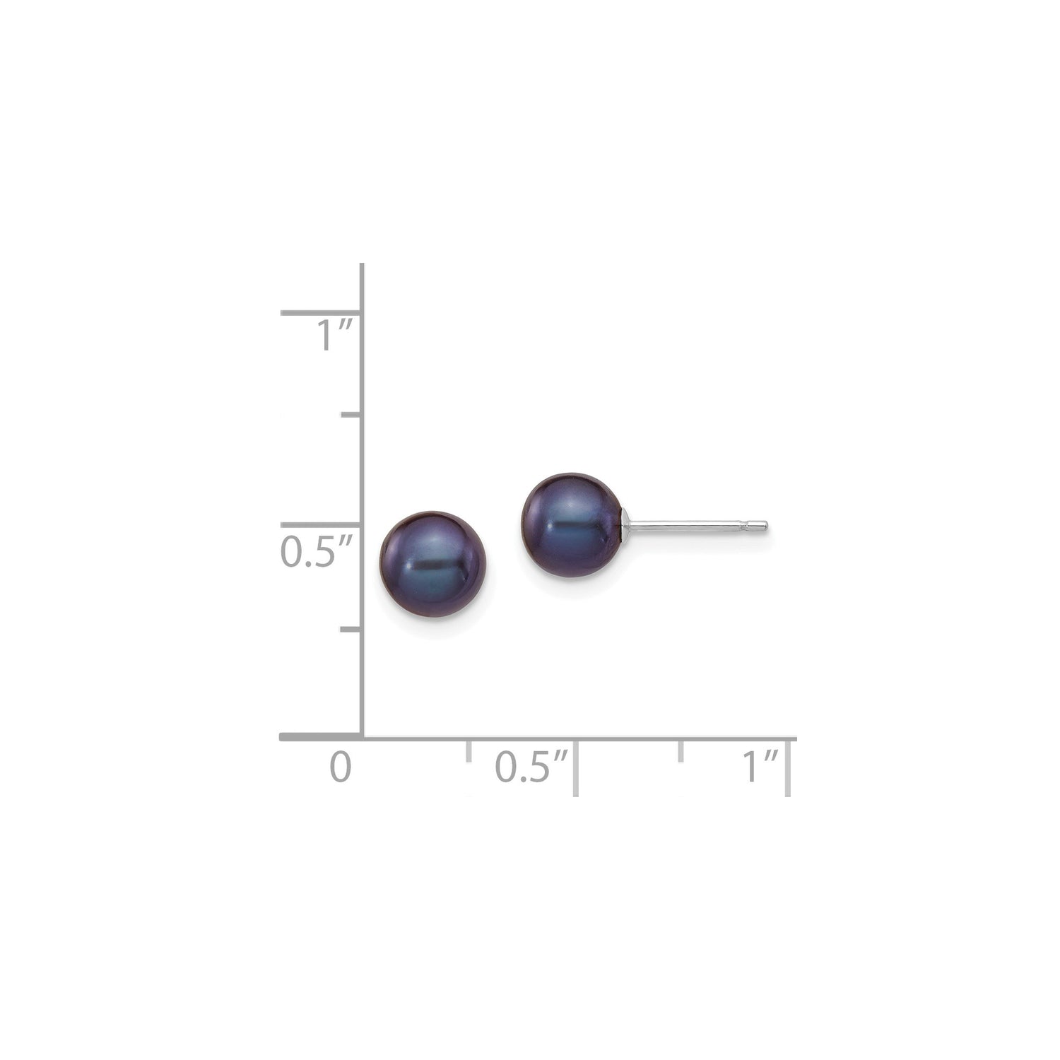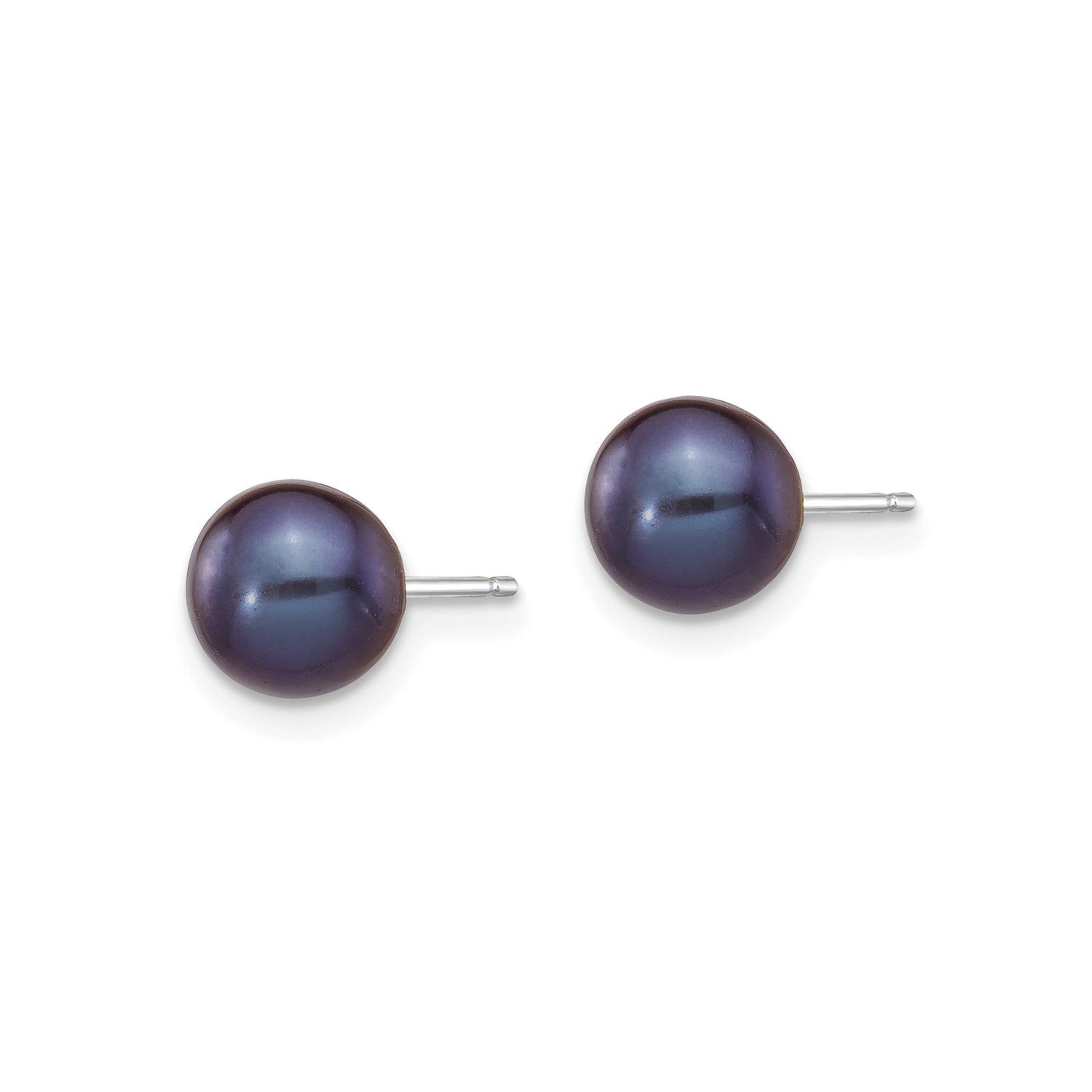 14k White Gold Stud Earrings with Black Cultured Pearl Round Design for Women