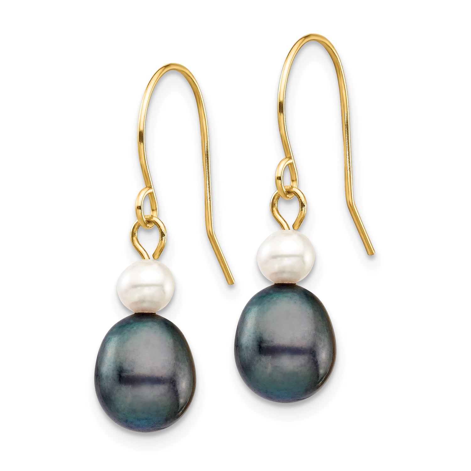 14k Yellow Gold Dangle Drop Earrings with White and Black Cultured Freshwater Pearls, Long Statement Design