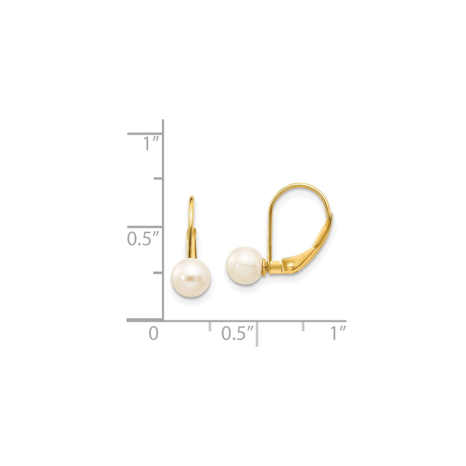 14k Yellow Gold Leverback Earrings with White Cultured Pearl Drop, Classic Bridal Style for Women