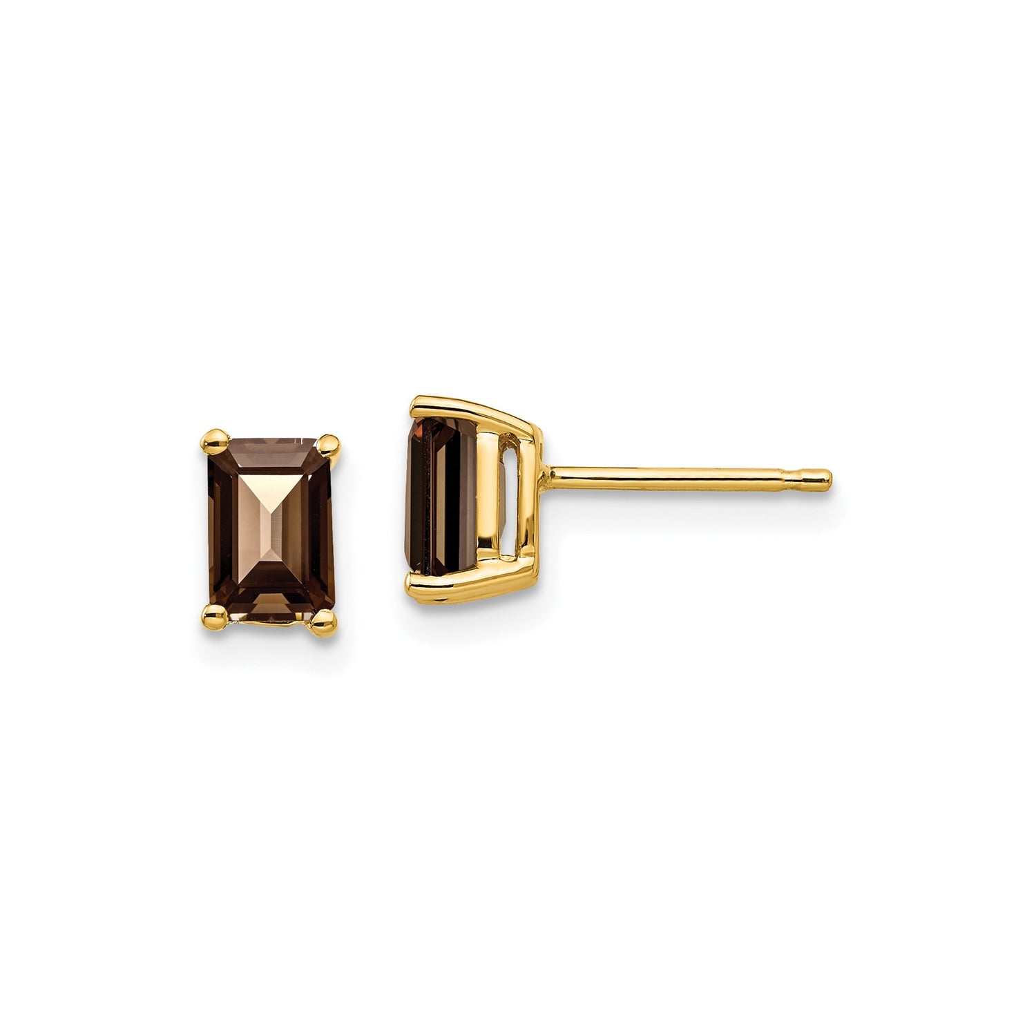 14k Yellow Gold Stud Earrings with Emerald Cut Smoky Quartz, Classic Fine Jewelry for Women