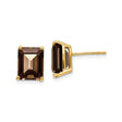 14k Yellow Gold Stud Earrings with Emerald Cut Smoky Quartz, Classic Minimalist Style