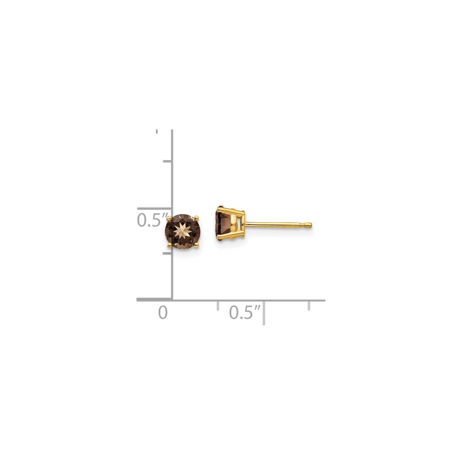 Enjoy Effortless Elegance with These 14k Yellow Gold Earrings Featuring Round Cut Brown Stones in a Classic Four Prong Setting. The Warm Hue of Smoky Quartz Blends Seamlessly with the Soft Tones of Yellow Gold to Create a Sophisticated Pair of Women's Earrings That Work with Any Outfit. Whether You're Dressing for a Day at the Office or an Evening Out, These Minimalist Stud Earrings Offer the Perfect Finishing Touch.