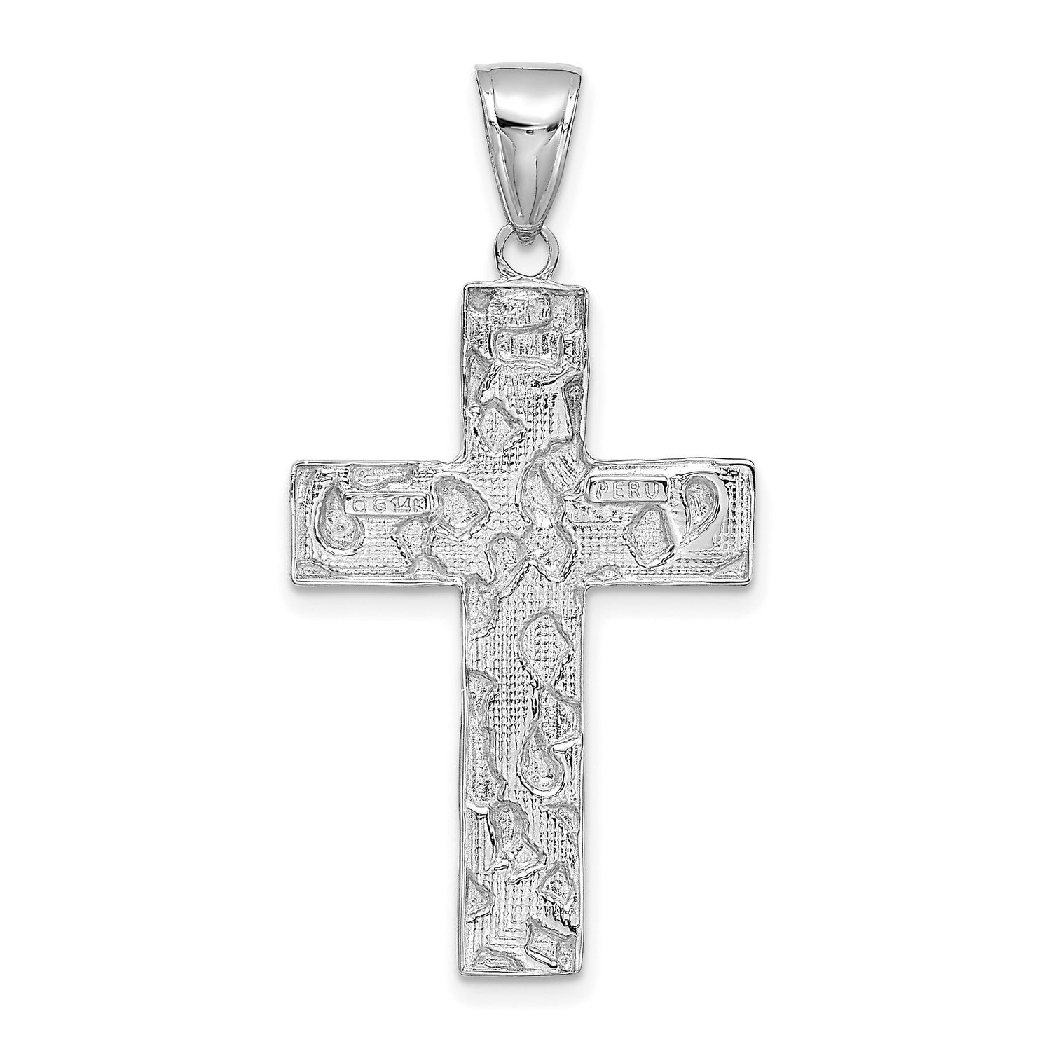 Polished Textured Nugget Style Cross Charm Pendant in Real 14k White Gold
