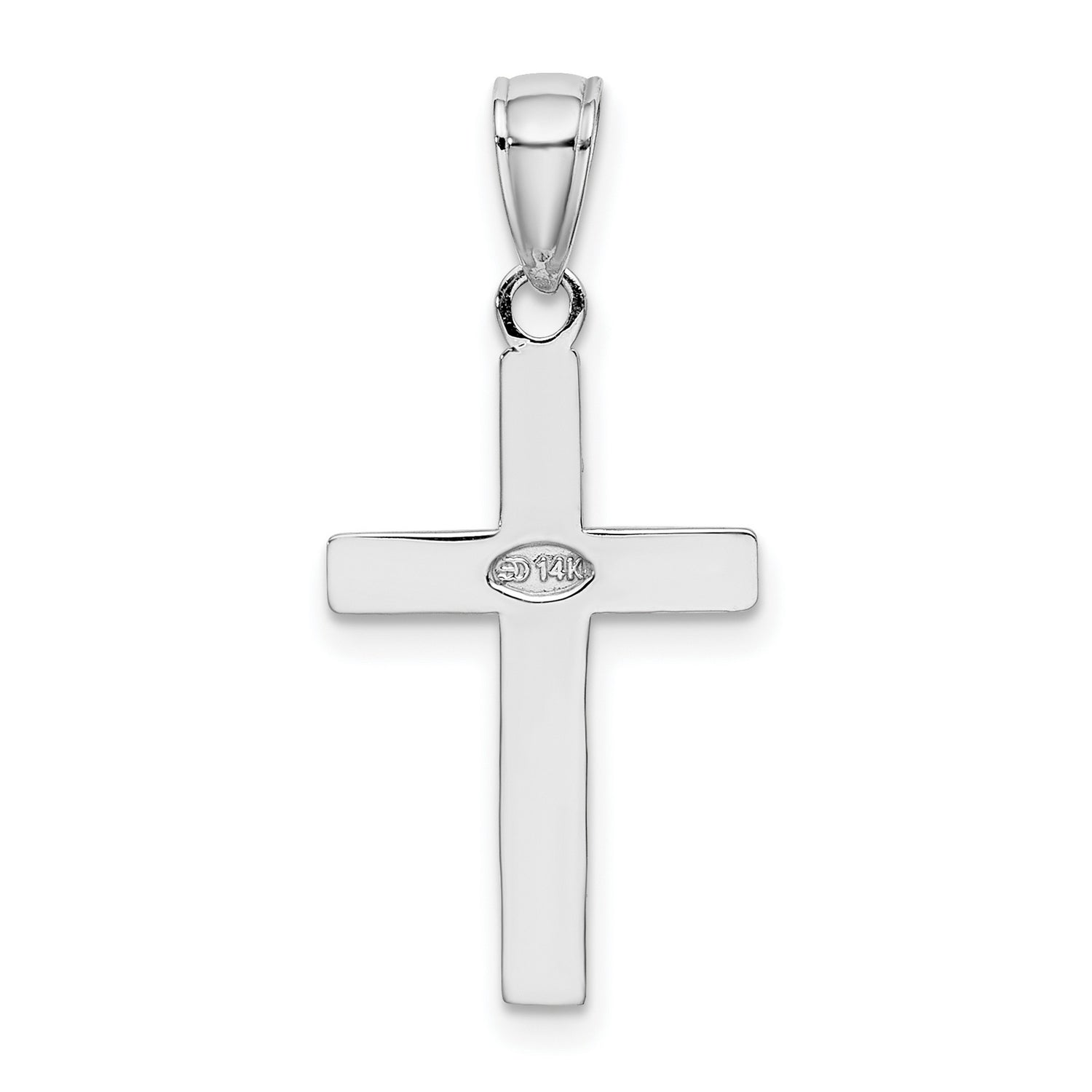 14k White Gold Cross Pendant, Polished Christian Charm, Minimalist Unisex Design