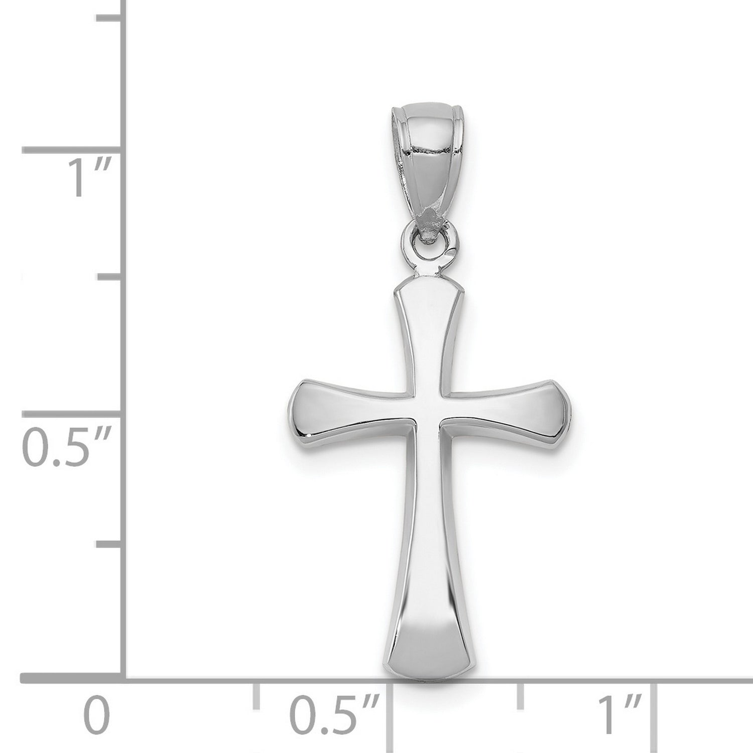 Polished Beveled Cross Round Tips Charm Pendant in Real 14k White Gold