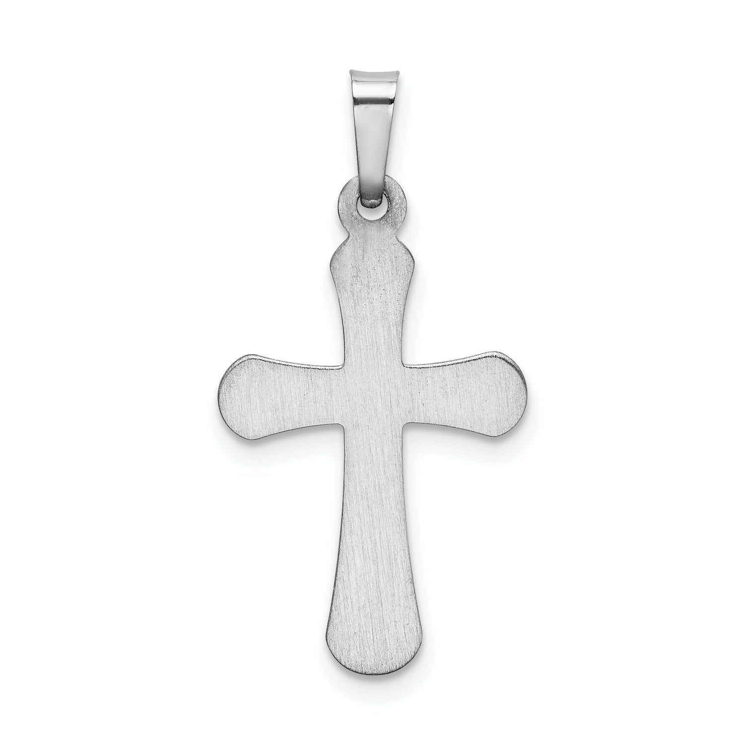 14k White Gold Cross Pendant with Smooth Flared Edge, Christian Religious Jewelry for Women