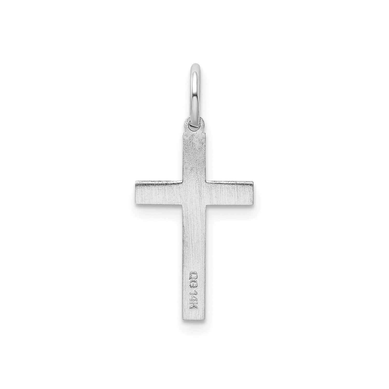 14k White Gold Cross Pendant with Textured Design, Religious Charm for Women