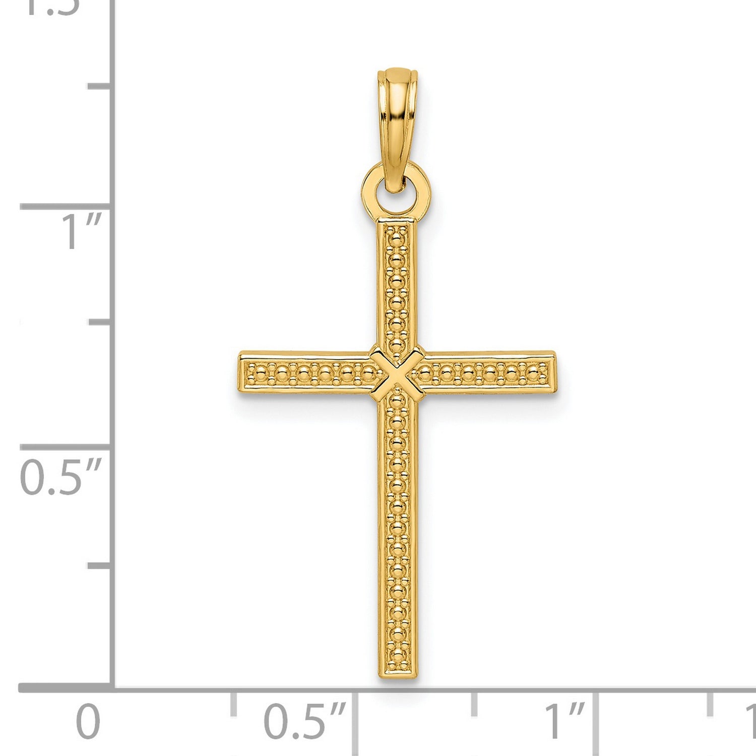 14k Yellow Gold Cross Pendant with Beaded Design, Polished Finish, Unisex Religious Jewelry