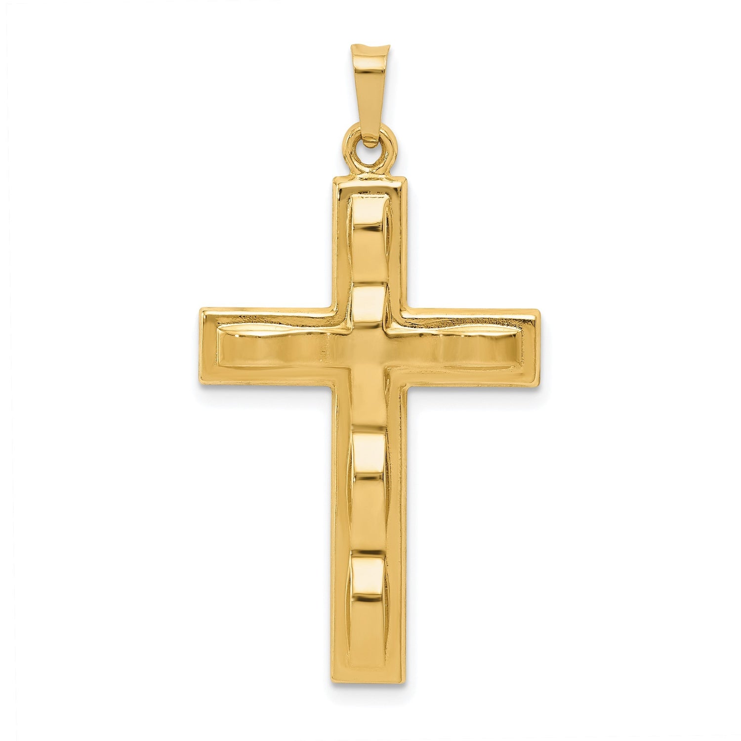 14k Yellow Gold Cross Pendant with Beveled Design and Textured Center for Men or Women
