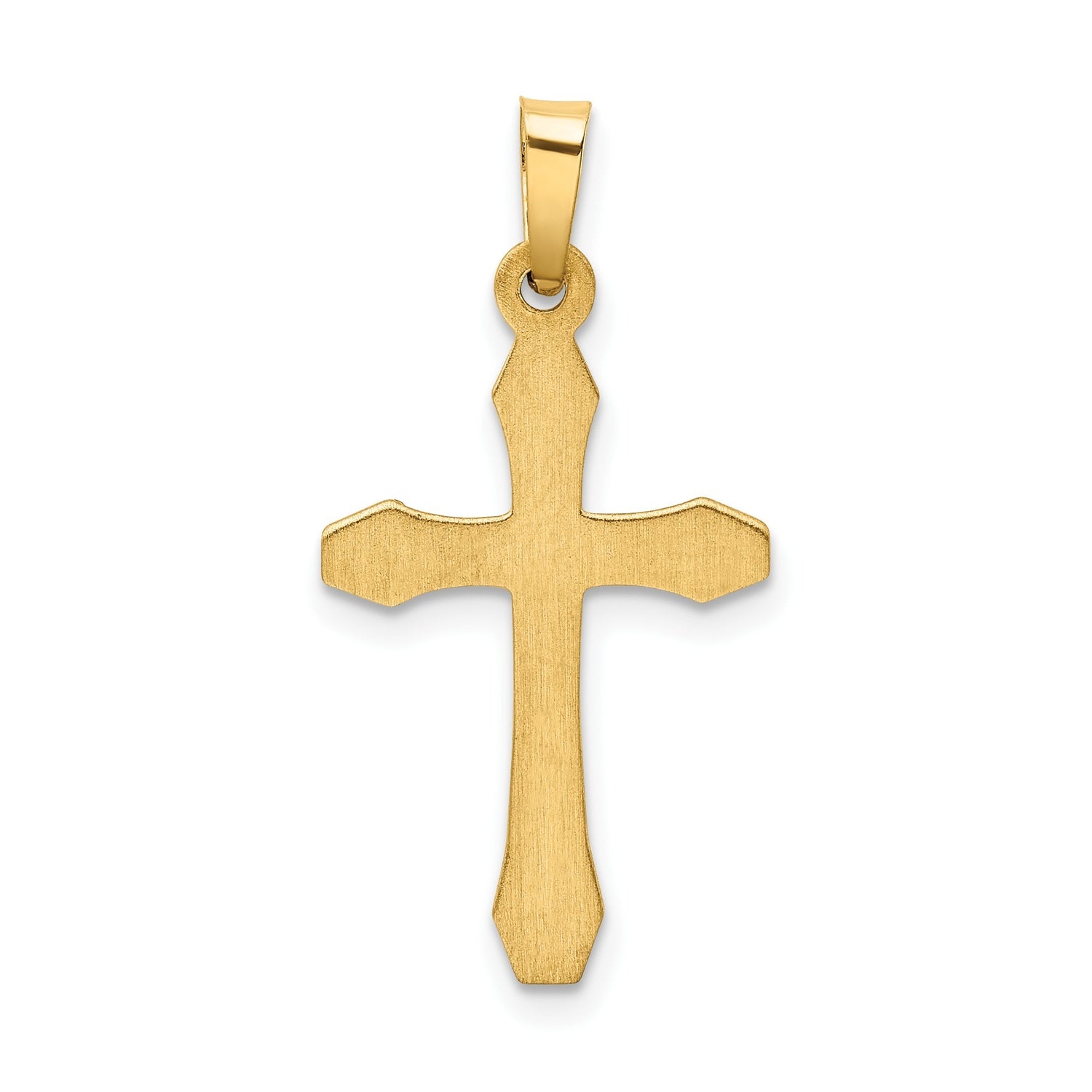 14k Yellow Gold Cross Pendant with Beveled Edges and Subtle Texture, Unisex Christian Jewelry