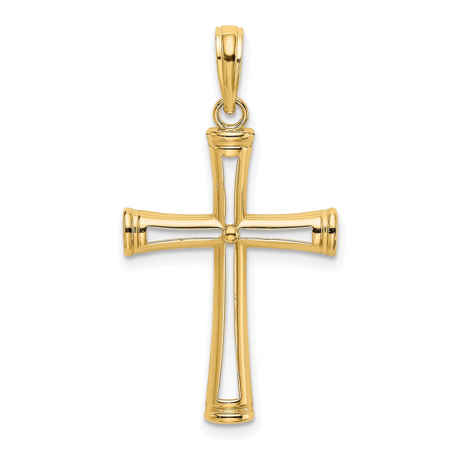 14k Yellow Gold Cross Pendant with Hollow Cut-Out Design for Men and Women