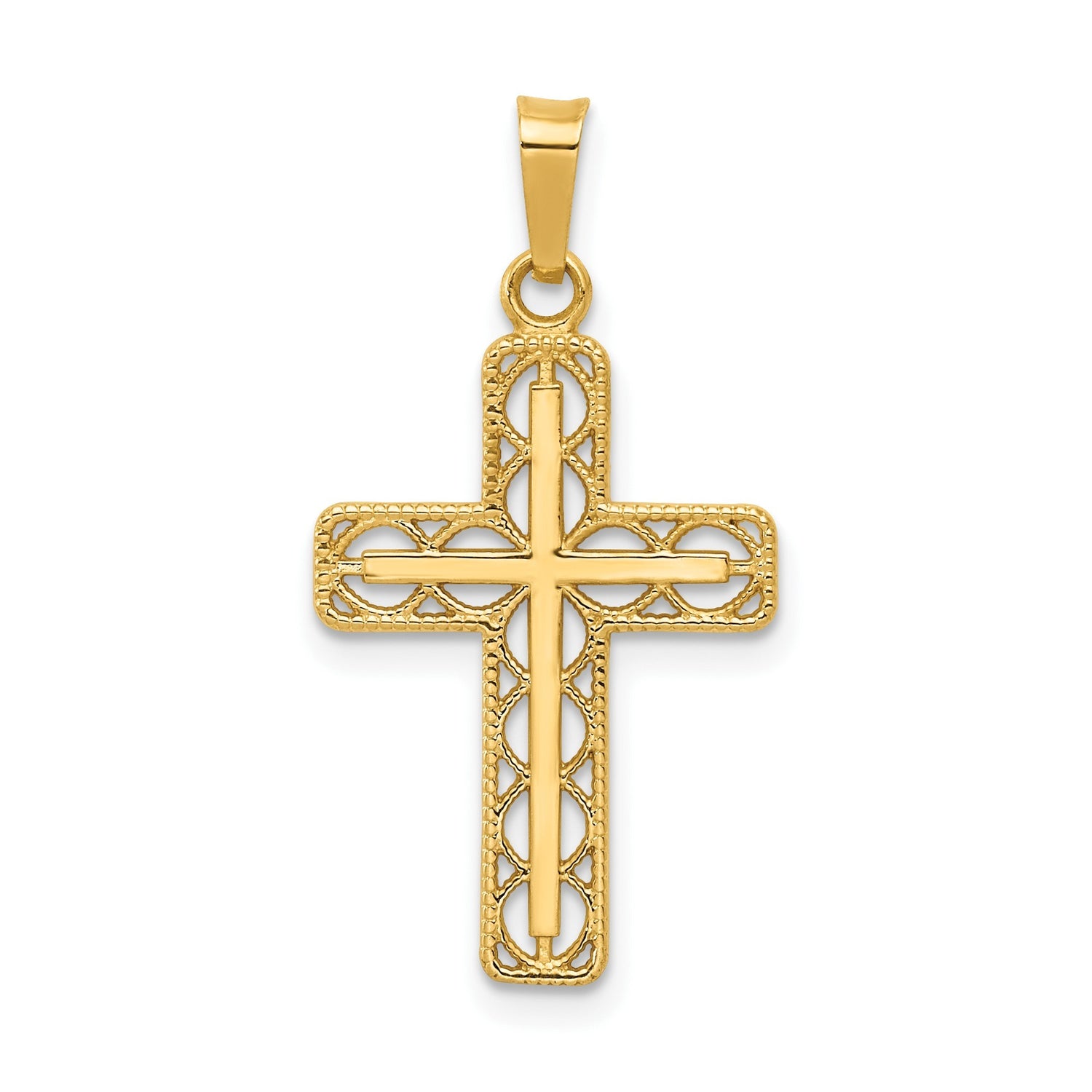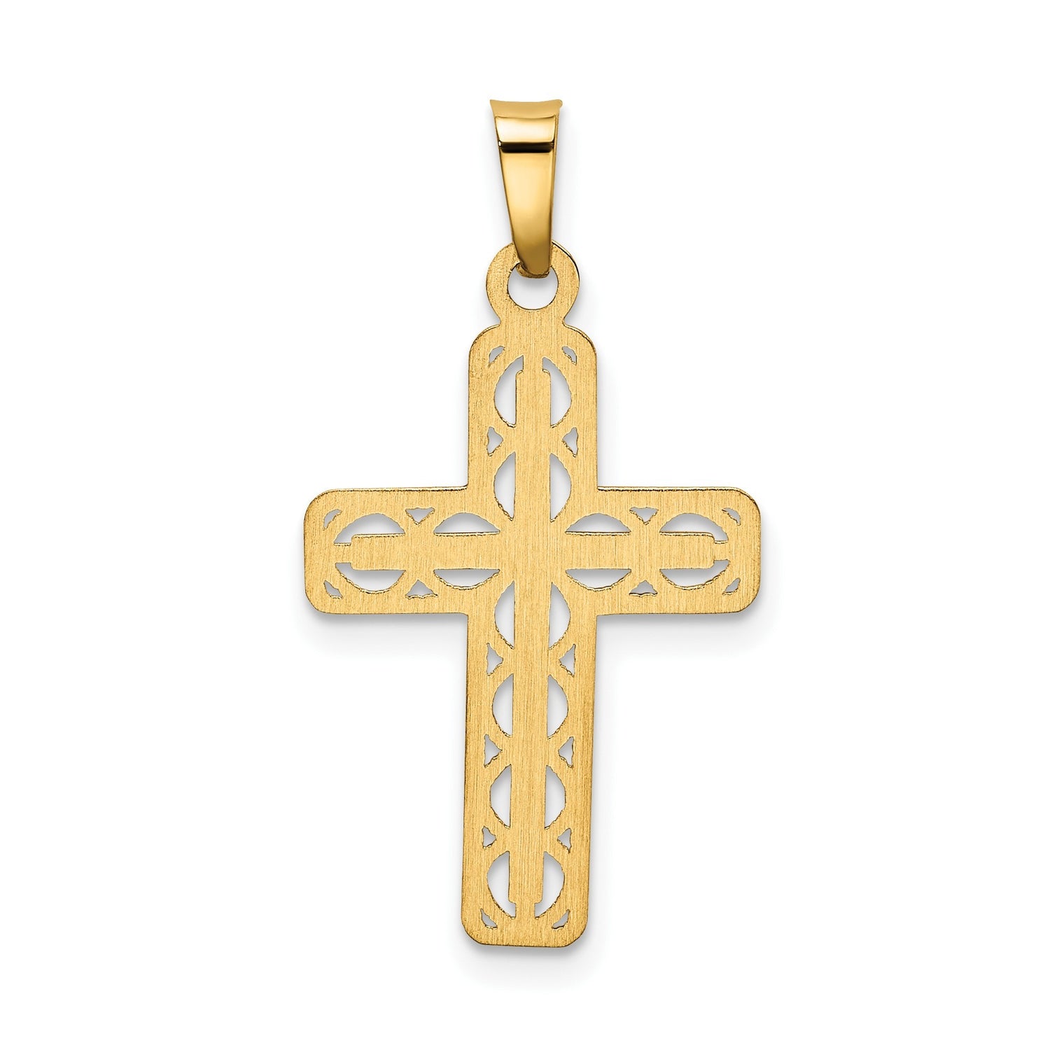 14k Yellow Gold Cross Pendant with Open Filigree Design, Christian Faith Jewelry for Women