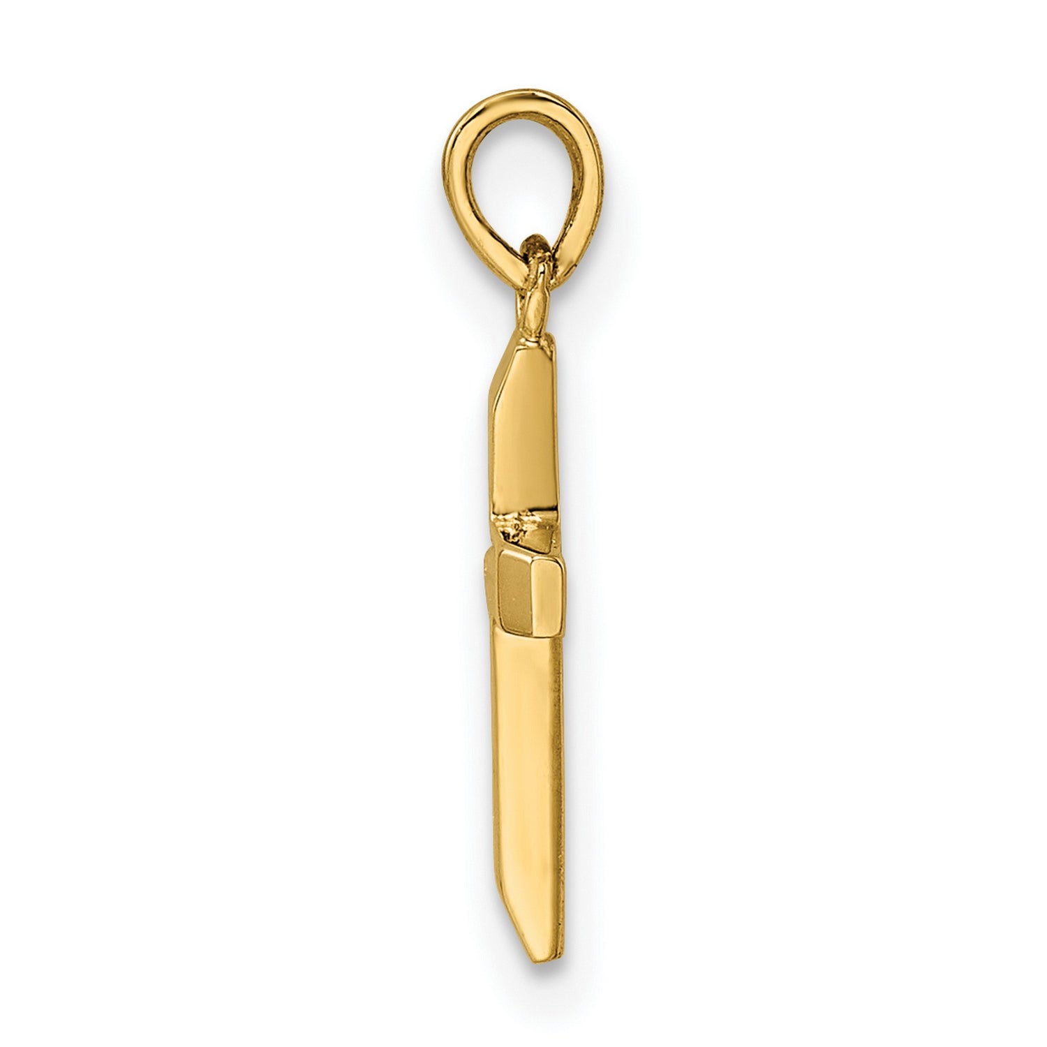 This pendant is not just a piece of jewelry; it’s a symbol of faith and style. The combination of polished yellow gold and unique design makes it an appealing gift for loved ones or a cherished addition to your own collection. Its timeless elegance ensures it will never go out of style.