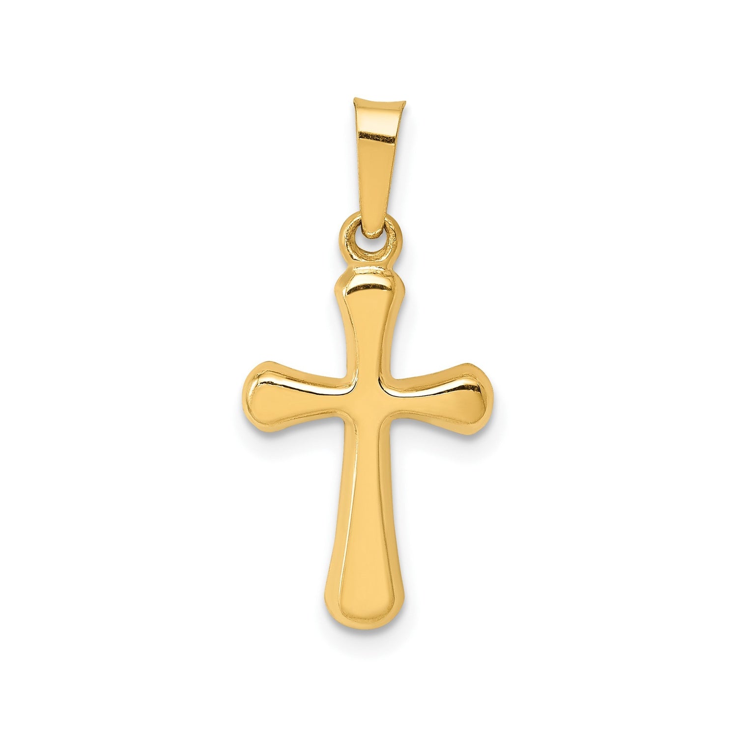 Polished Hollow Rounded Latin Cross Charm Pendant in Real 14k Yellow Gold