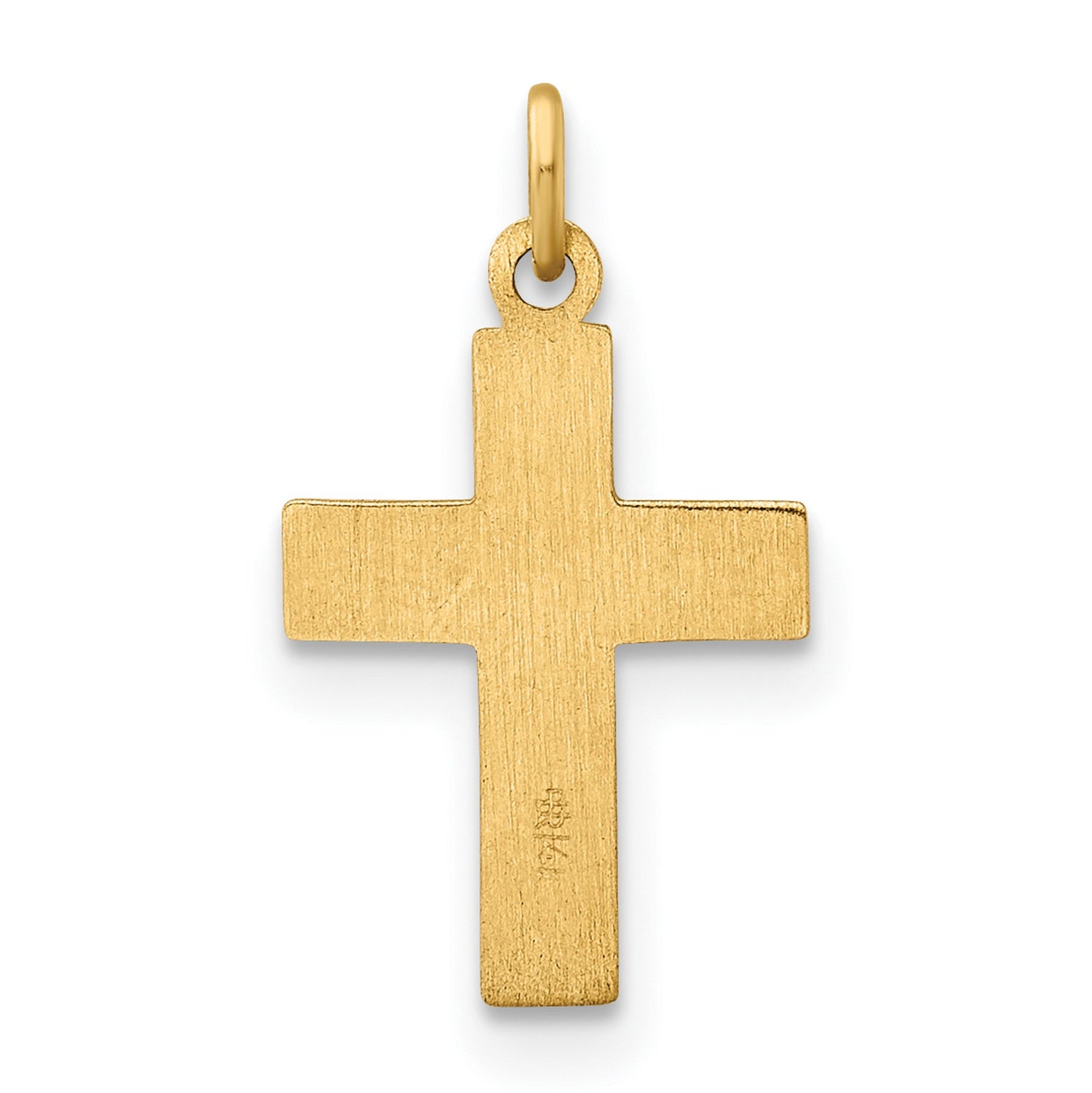 14k Yellow Gold Cross Pendant with Textured Design and Starburst Center