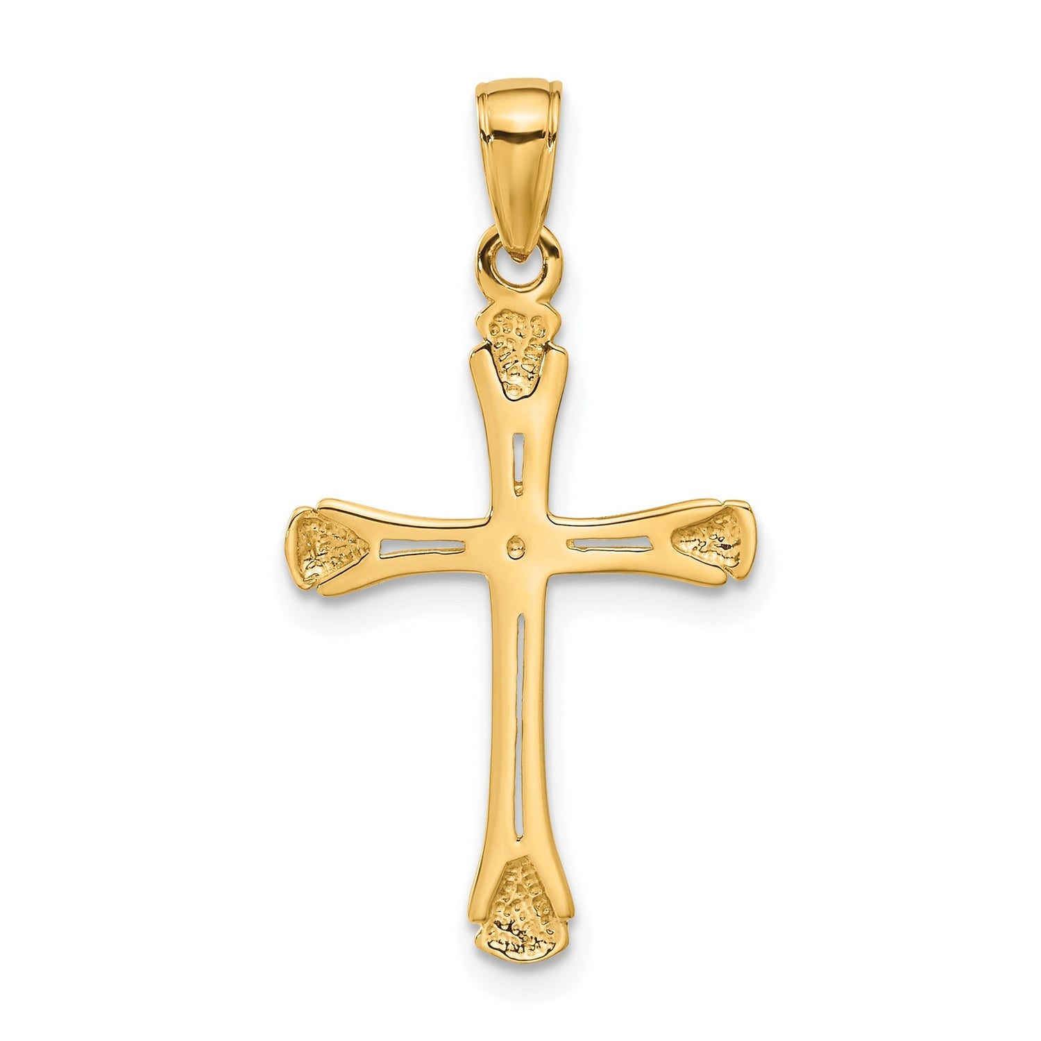 14k Yellow Gold Cross Pendant with Triangle Tipped Arms, Fluted Design, Latin Style